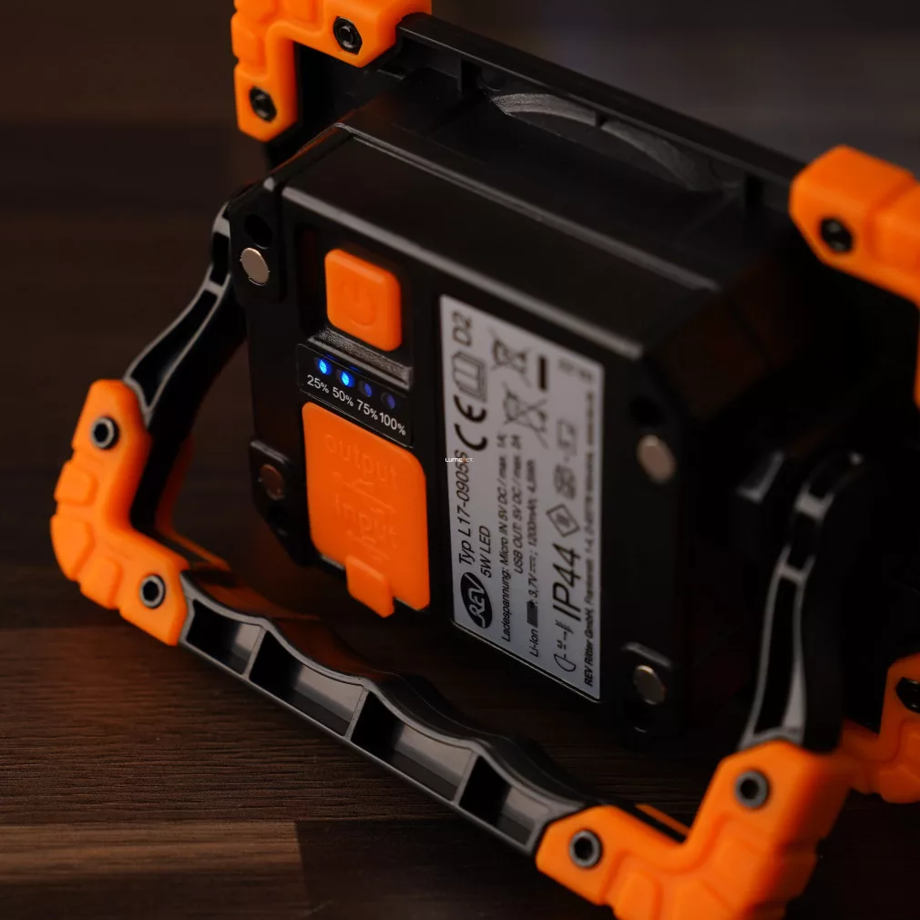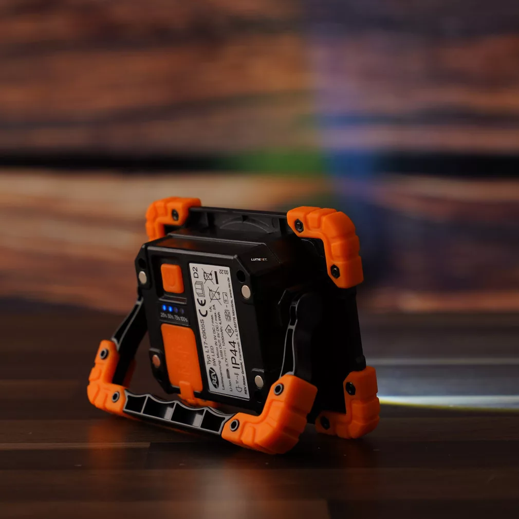 Lampa reîncărcabilă GAO LED Flood 5 este o lampă de lucru mică și ușor de utilizat. Lampa este echipată cu un suport, astfel încât poate fi așezată stabil pe sau lângă suprafața de lucru. Puterea luminoasă de 500 lumeni și temperatura de culoare de 7500K asigură o iluminare suficientă pentru proiecte mici de amenajare a casei sau de bricolaj. Odată încărcată complet, lampa poate lumina până la 2 ore. Puterea luminoasă poate fi reglată pentru a se potrivi sarcinii de îndeplinit, cu 2 setări între 50% și 100% iluminare. Încărcarea completă durează aproximativ 4 ore folosind cablul inclus în pachet. Lampa este echipată cu o funcție de power bank, astfel încât orice dispozitiv inteligent poate fi încărcat, dacă este necesar.