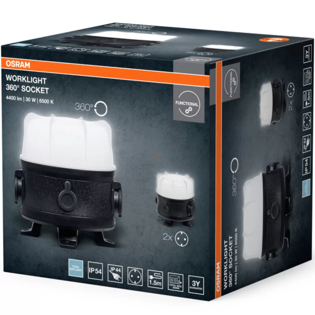 Lampă de lucru LED Osram cu două prize, 30 W, alb extra rece (Worklight Value 360°)