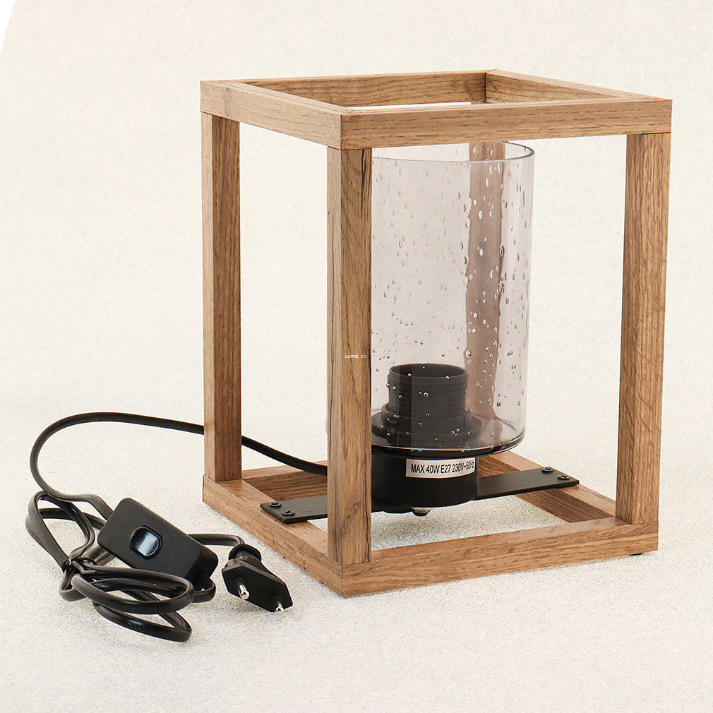 Lampa de masă Pettey Globo 15497T are o înălțime de 22 cm, un design modern și un soclu E27, care permite înlocuirea sursei de lumină. Lampa este fabricată din metal și sticlă, cu finisaj din lemn și culoare fumurie. Este prevăzută cu un singur soclu, asigurând flexibilitate maximă în alegerea sursei de lumină. Produsul are un grad de protecție IP20, fiind potrivit pentru utilizare în interior. Lampa nu este reglabilă și nu include o sursă de lumină. Dimensiuni: 170 mm lungime, 170 mm lățime, 220 mm înălțime. Dimensiunile ambalajului sunt 18x18x24 cm, iar produsul cântărește 6,85 kg. Fabricat de Globo.
