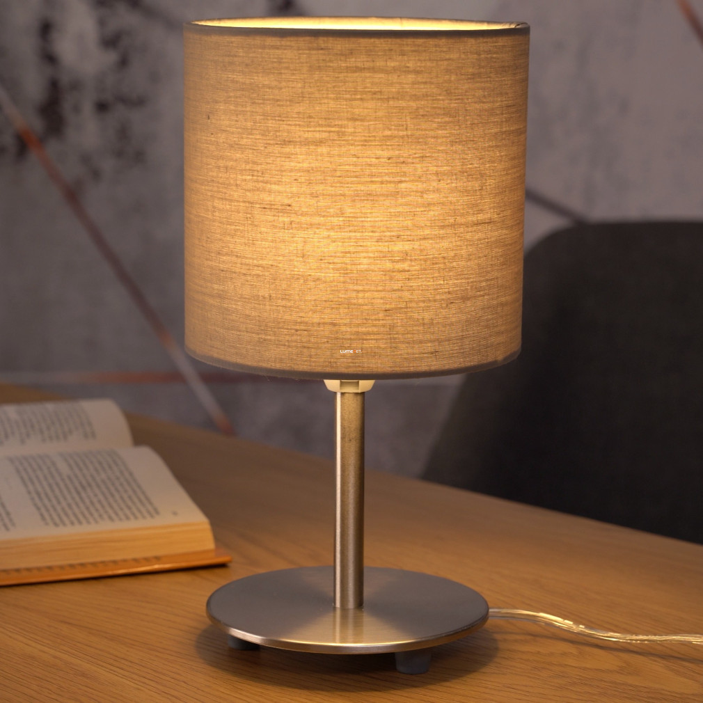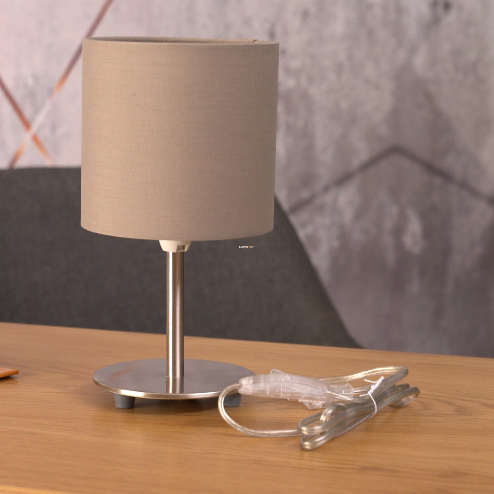 Lampa de masă Pasteri Eglo 95726 în culoarea gri-bej este proiectată într-un stil modern, cu o înălțime de 27,5 cm și un diametru de 14 cm. Abajurul este realizat din oțel și țesătură într-o combinație de culori gri și argintiu. Are un soclu E14, sursa de lumină este înlocuibilă și nu este inclusă în pachet. Puterea lămpii, fluxul luminos și temperatura culorii depind de becul utilizat și nu are funcție de reglare a intensității luminoase. Se controlează cu un întrerupător cu cablu și are un grad de protecție IP20. Produsul cântărește 0,72 kg, iar dimensiunile ambalajului sunt 16 x 16 x 18 cm. Codul logistic este 95726, iar producătorul este EGLO.