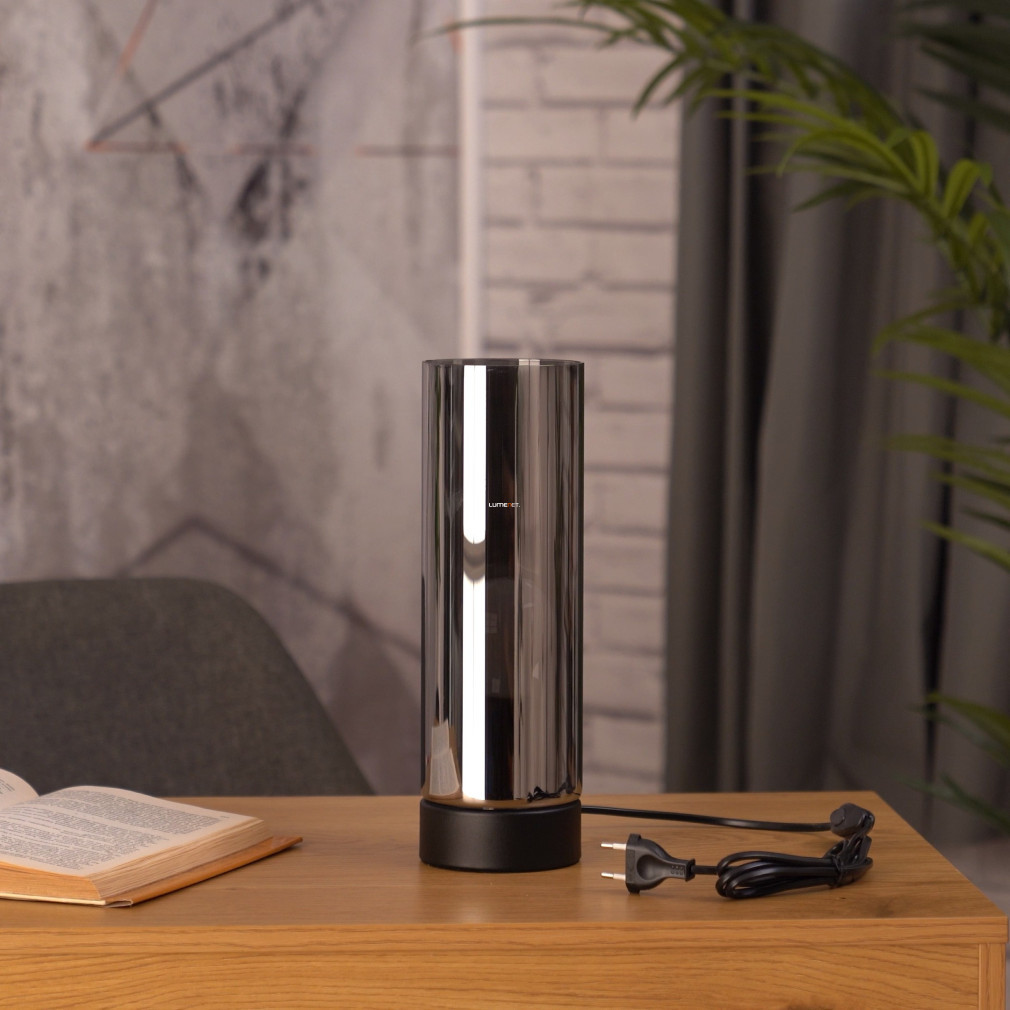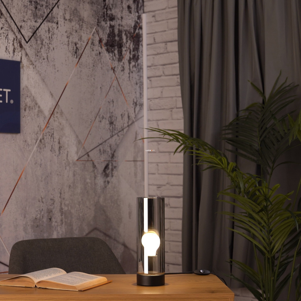 Lampa de masă Damasco Eglo 98887, 31 cm, are un design modern, o înălțime de 310 mm și un diametru de 100 mm, fiind o soluție de iluminat pentru locuință. Lampa este fabricată din oțel și sticlă, într-o combinație de culori negru și translucid. Are un soclu E27, care poate fi echipat cu o sursă de lumină înlocuibilă. Fluxul luminos, culoarea luminii, puterea și temperatura culorii depind de becul selectat. Lampa nu este reglabilă, poate fi acționată cu un întrerupător cu cablu, are un grad de protecție IP20 și, prin urmare, este potrivită pentru utilizare în interior. Produsul cântărește 0,89 kg și are dimensiuni de ambalare de 14x14x34 cm. Sursa de lumină nu este inclusă în pachet. Fabricat de EGLO, cod logistic 98887.