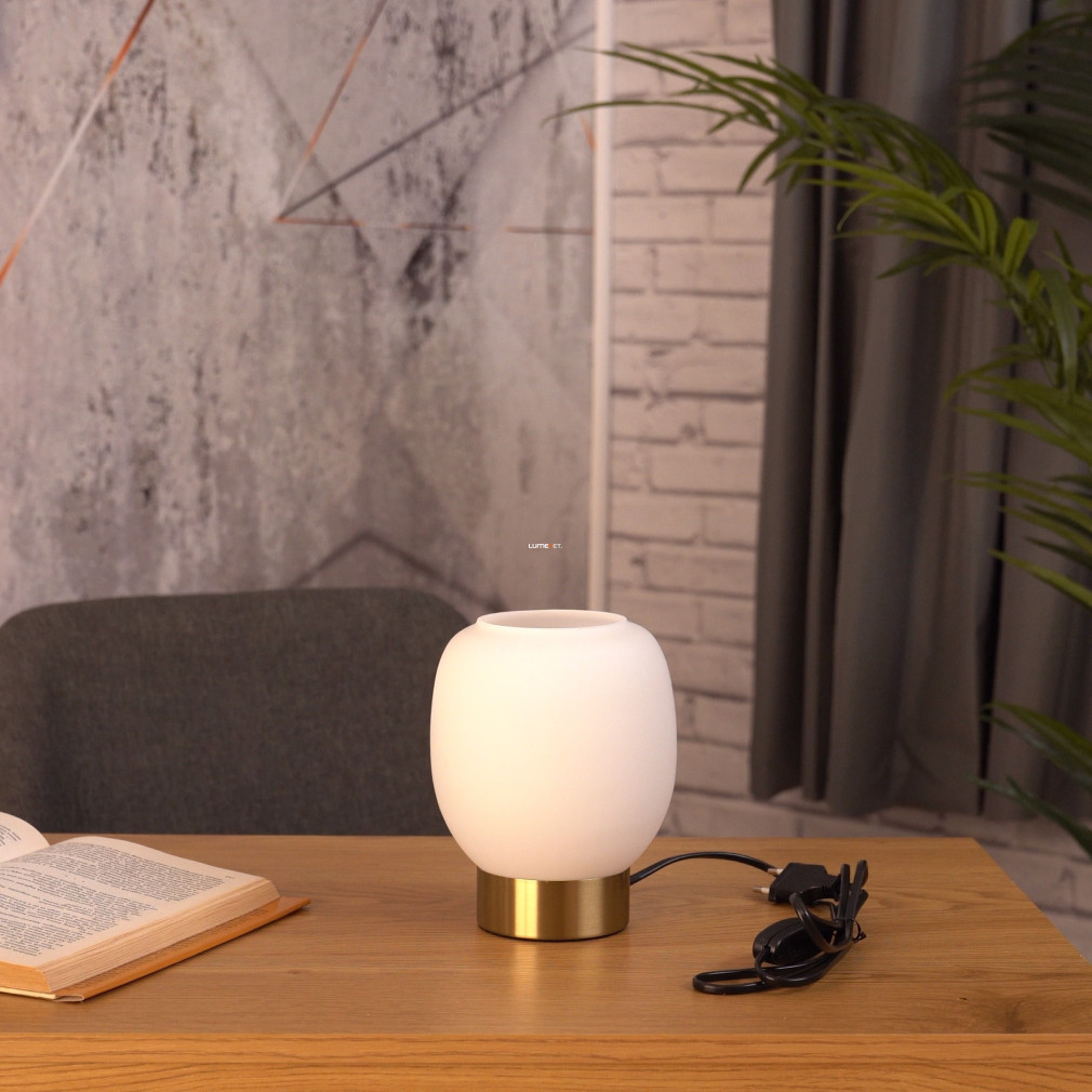 Lampa de masă, 31 cm - Manzanares Eglo 900307 este o soluție de iluminat modernă și elegantă, care se potrivește în diverse interioare datorită utilizării materialelor din oțel și sticlă și combinației de culori alb, auriu și negru. Lampa are 1 soclu E27, pentru care sursa de lumină poate fi selectată separat, astfel încât fluxul luminos, culoarea luminii, puterea și temperatura culorii să poată fi reglate după cum este necesar. Produsul poate fi acționat cu un întrerupător cu cablu, nu este reglabil și are un grad de protecție IP20, ceea ce îl face potrivit pentru utilizare în interior. Lampa are un diametru de 145 mm, o înălțime de 180 mm și o greutate totală de 2,65 kg. Dimensiunile ambalajului sunt 18x18x23 cm. Produsul este fabricat de EGLO și are codul logistic 900307.