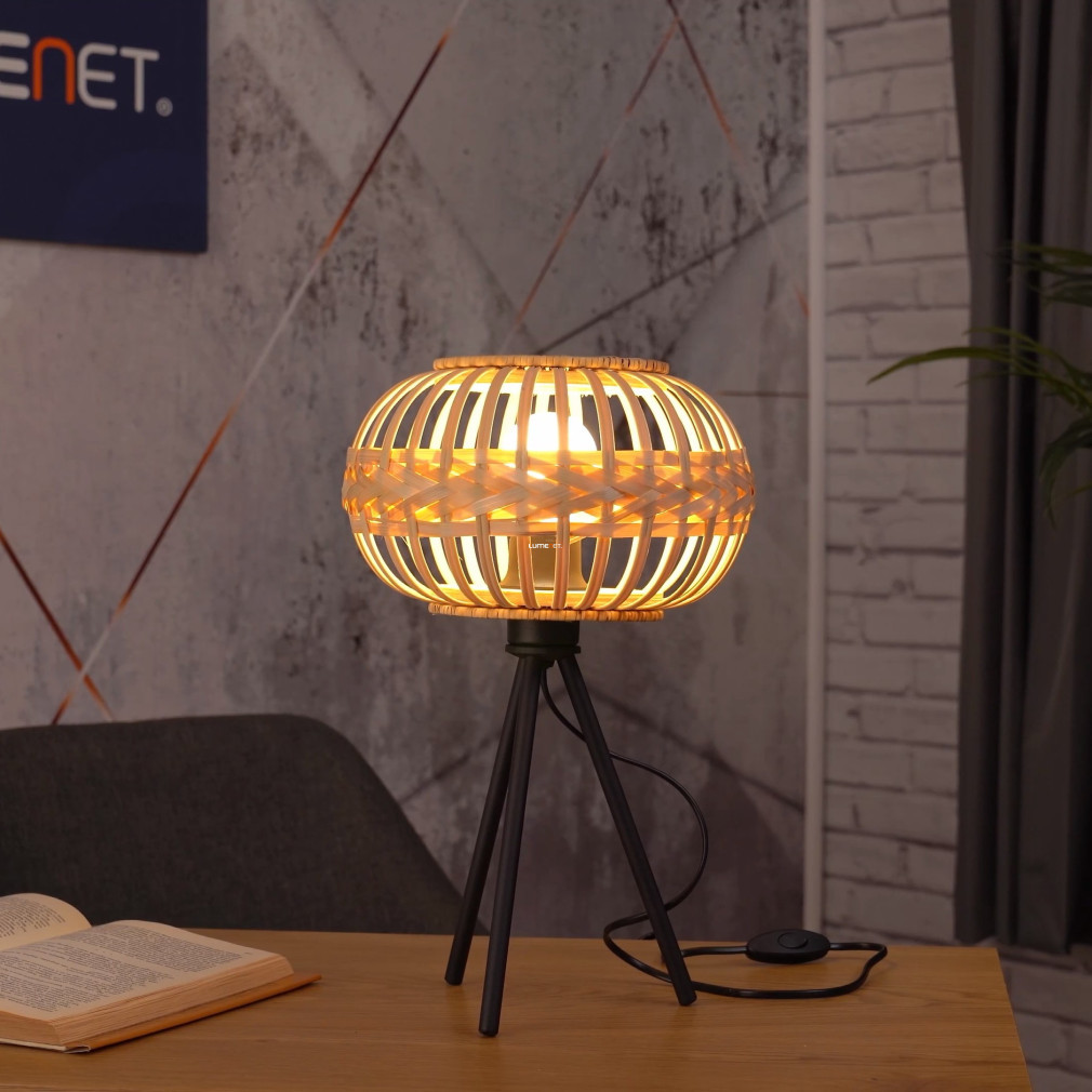 Lampa de masă Amsfield 1 Eglo 43865 are o înălțime de 41 cm și oferă un aspect modern, cu linii curate, datorită combinației de oțel negru și lemn. Soclul 1xE27 permite înlocuirea sursei de lumină, astfel încât fluxul luminos, culoarea luminii, puterea și temperatura culorii pot fi variate în funcție de necesități. Lampa nu include o sursă de lumină și are protecție IP20, fiind potrivită pentru utilizare în interior. Produsul are un diametru de 26 cm și cântărește 0,68 kg. Dimensiunile ambalajului sunt 26x32x26 cm. Codul logistic pentru acest model fabricat de Eglo este 43865.