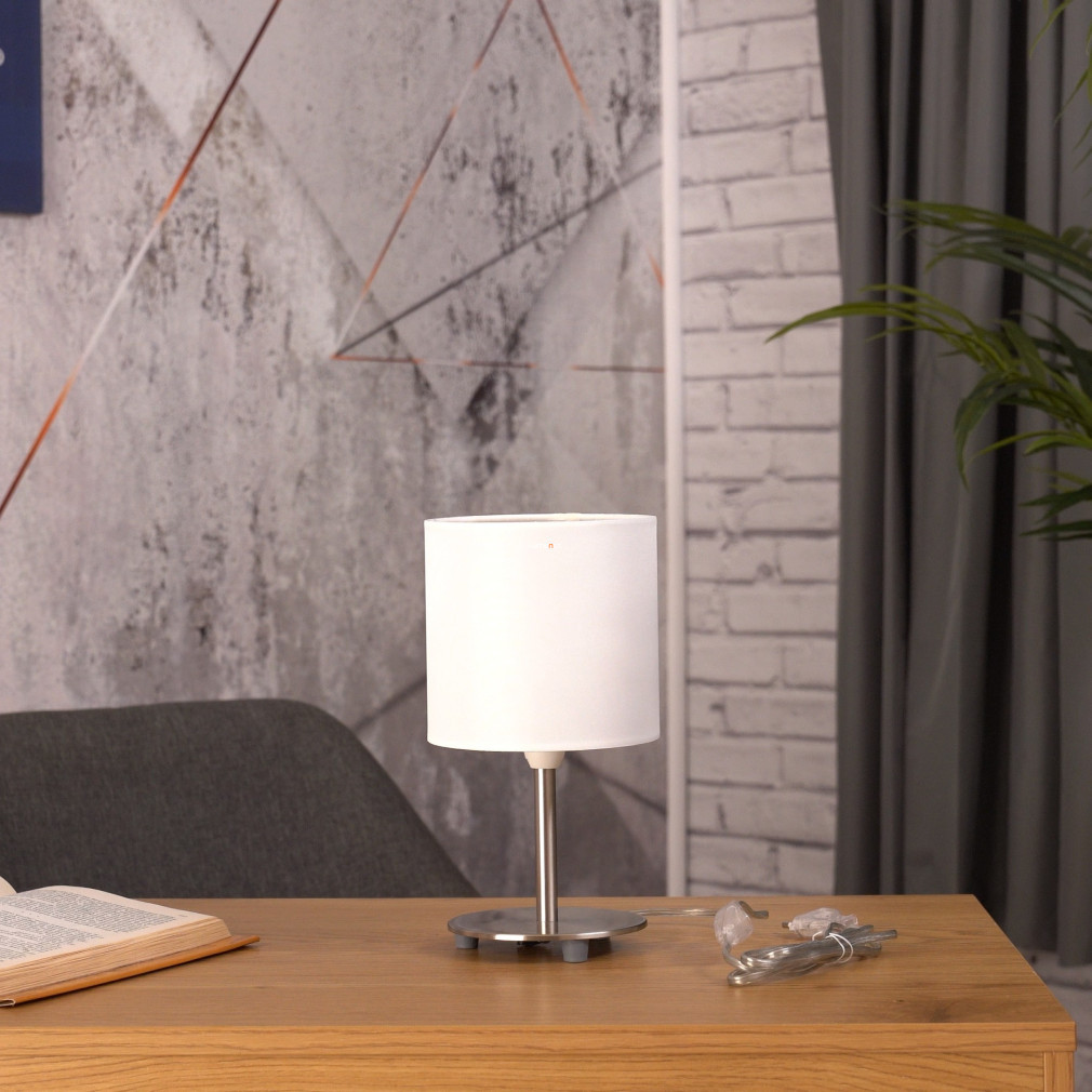 Lampa de masă Eglo Pasteri 95725 are un design modern și este disponibilă în culorile alb și argintiu, fiind fabricată din oțel și materiale textile. Lampa are o înălțime de 27,5 cm, un diametru de 14 cm și o greutate de 0,71 kg. Are un soclu E14, care poate fi echipat cu o sursă de lumină înlocuibilă, care nu este inclusă în pachet. Lampa este controlată de un întrerupător cu cablu, nu este reglabilă și are protecție IP20. Produsul este fabricat de EGLO, codul său logistic este 95725, iar dimensiunile ambalajului sunt 16x16x18 cm.