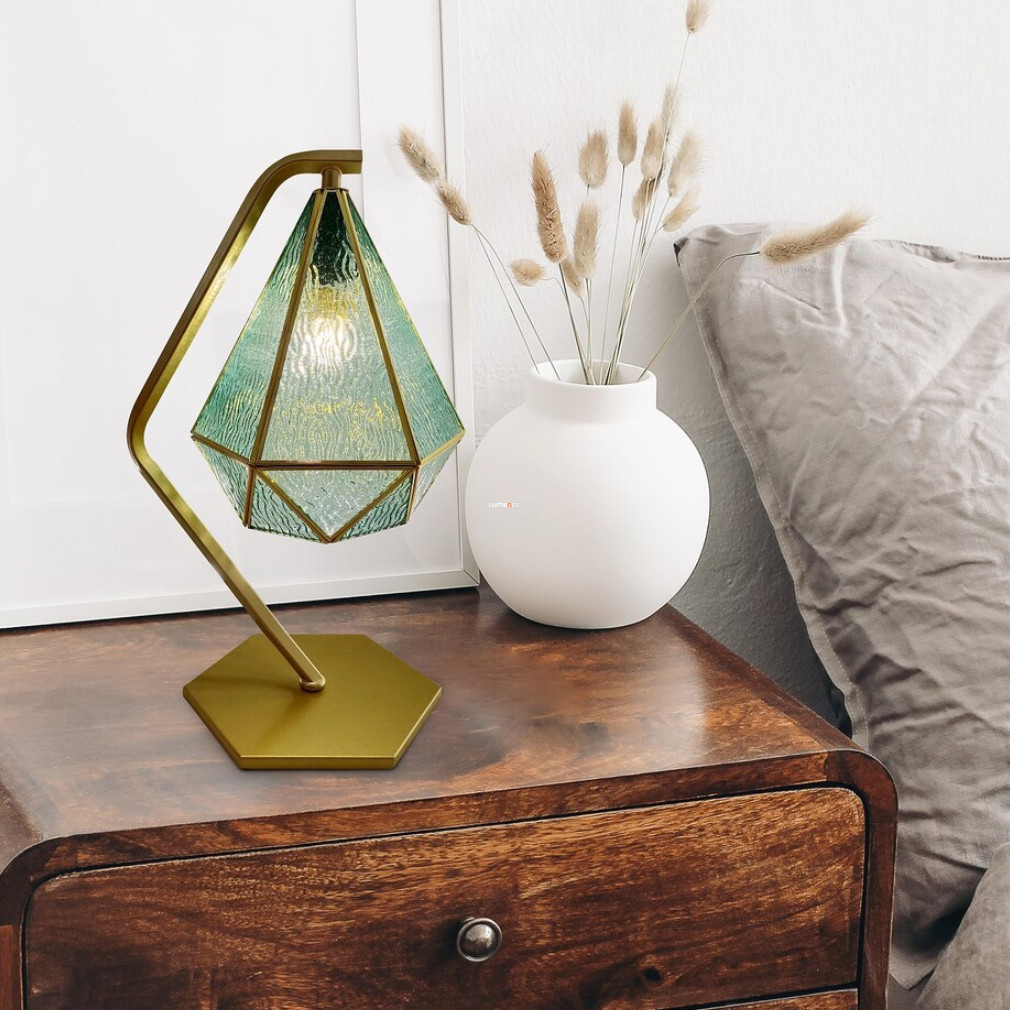 Lampa de masă Norah Rábalux 74200 este o soluție de iluminat elegantă și modernă, realizată din sticlă și metal. Lampa are un corp din sticlă albastră și elemente metalice de culoare aurie, cu o înălțime de 44 cm, o lungime de 26 cm și o lățime de 18,5 cm. Este echipată cu un soclu E14, care poate fi utilizat cu o sursă de lumină înlocuibilă, cu o tensiune nominală maximă de 230 V. Lampa are protecție IP20, fiind potrivită pentru utilizare în interior. Cablul acoperit cu material textil are o lungime de 1,8 metri, asigurând o amplasare convenabilă. Lampa de masă Norah nu include o sursă de lumină, astfel încât fluxul luminos, culoarea luminii, puterea și temperatura culorii variază în funcție de becul ales. Produsul cântărește 1,85 kg, iar dimensiunile ambalajului său sunt 49x32x27 cm. Lampa este fabricată de Rábalux și codul său logistic este 74200.