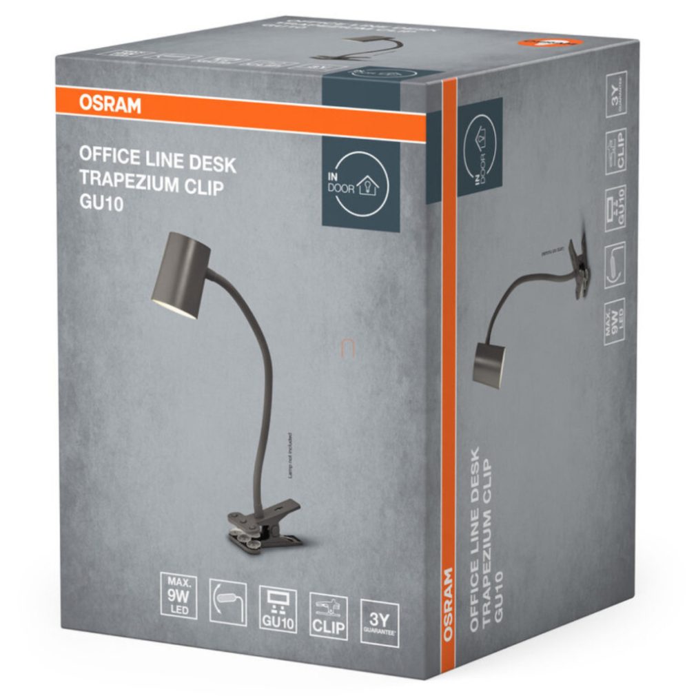 Lampă de masă cu clemă, 34 cm, gri - Osram Office Line Desk Trapezium, cu 1xGU10 soclu, cablu de 1,6 metri, 220-240 V