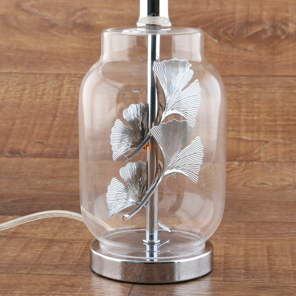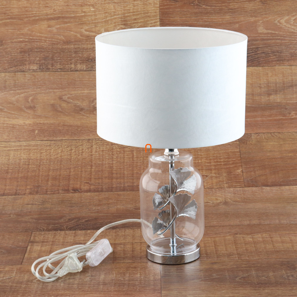 Lampa de masă Ginkgo Leaf este un model elegant, cu o înălțime de 38 cm, de culoare albă, cu detalii cromate. Principalele materiale utilizate la fabricarea lămpii sunt metalul, țesătura și plasticul, care asigură durabilitate și un aspect modern. Are o priză E27, care poate fi echipată cu o sursă de lumină înlocuibilă, permițând reglarea luminozității și a temperaturii culorii în funcție de necesități. Lampa funcționează la o tensiune nominală de 230 V, este controlată de un comutator basculant și are un grad de protecție IP20, fiind potrivită pentru utilizare în interior. Are un diametru de 25 cm, o lungime a cablului de 1,5 metri și cântărește 1,29 kg. Dimensiunile ambalajului sunt 26x26x32 cm. Sursa de lumină nu este inclusă, dar lampa este un produs de calitate al mărcii Globo.