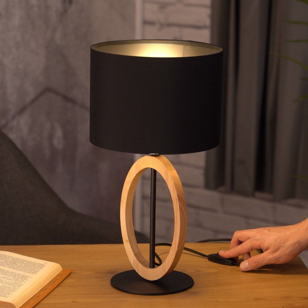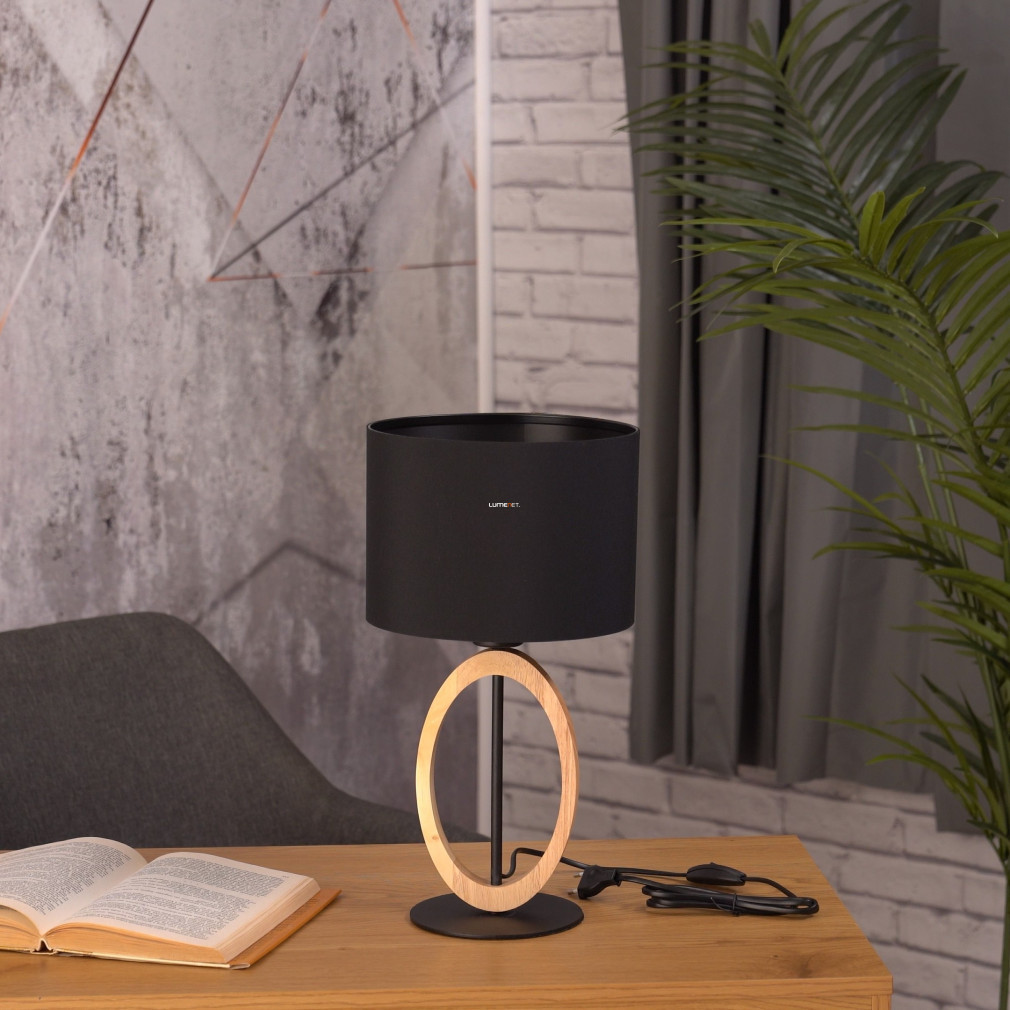 Lampă de masă cu inel din lemn, 42 cm - Basildon Eglo 43569, cu soclu 1xE27