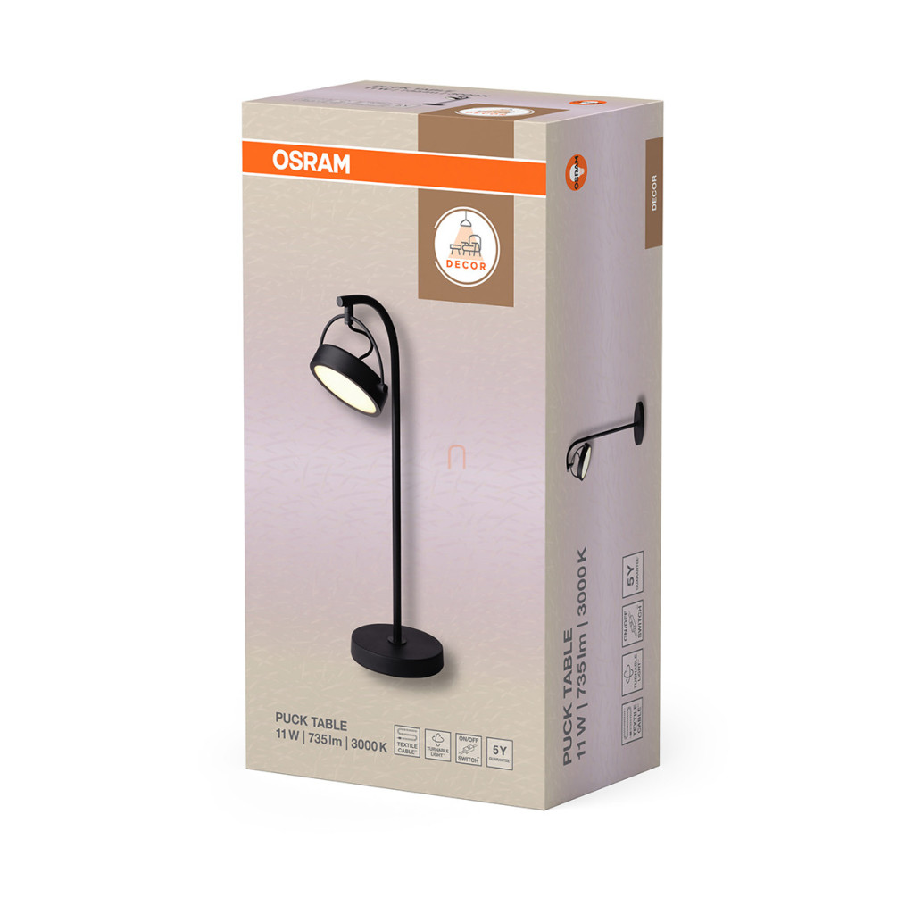 Lampă de masă cu intensitate reglabilă, 51,5 cm - Osram Decor Puck, 3000K, 735 lm, 11W, cu cablu de 1,6 metri, 220-240 V