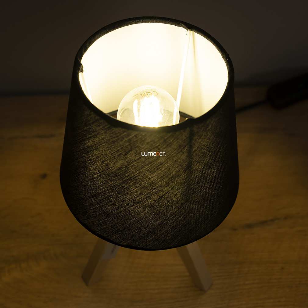 Lampa de masă cu trepied Lychee Rábalux 2069, cu o înălțime de 23 cm și un diametru de 14 cm, oferă o soluție compactă pentru nevoile de iluminat ale casei. Are un soclu E14, care permite utilizarea surselor de lumină înlocuibile, astfel încât fluxul luminos, culoarea luminii, puterea și temperatura culorii să poată fi selectate în funcție de necesități. Corpul lămpii este realizat din lemn și țesătură, cu tonuri de lemn și negru care domină schema de culori. Designul în stil scandinav îi conferă un aspect modern, iar clasa de protecție IP20 o face potrivită pentru utilizarea în interior. Produsul cântărește 0,22 kg, iar dimensiunile ambalajului sunt de 15x15x26 cm. Lampa nu include sursa de lumină; producătorul este Rábalux.