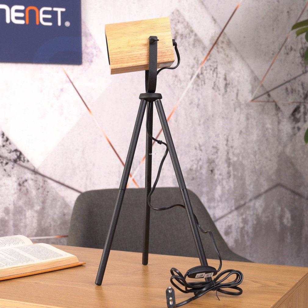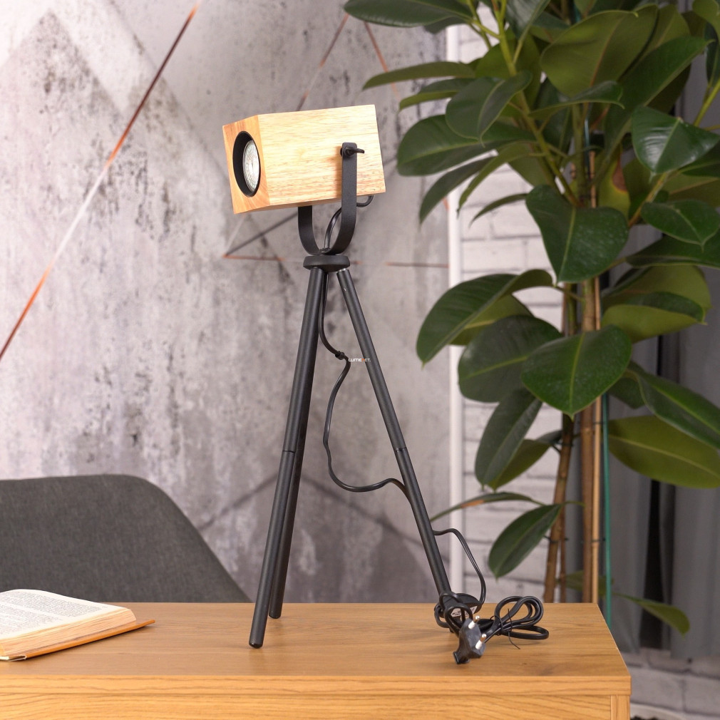Lampă de masă cu trepied, cub din lemn, 47 cm - Ayles Eglo 43749, cu soclu 1xGU10