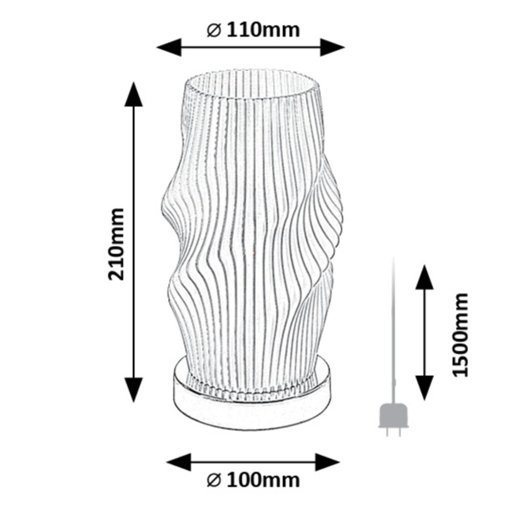 Lampa de masă de designer Tiana Rábalux 74189 are o înălțime de 21 cm și un diametru de 11 cm, fiind suficient de compactă pentru a se potrivi pe mese și rafturi mai mici. Produsul are un soclu E14 și este potrivit pentru utilizarea cu o sursă de lumină înlocuibilă, care nu este inclusă. Lampa funcționează la o tensiune nominală de 230 V, iar puterea sa maximă depinde de sursa de lumină selectată. Corpul lămpii este fabricat din metal și plastic și este disponibil în culorile crom și alb, conferindu-i un aspect modern. Are un grad de protecție IP20, deci este recomandată pentru utilizare în interior. Produsul este echipat cu un cablu de 1,5 metri și este ușor de conectat la rețeaua electrică. Dimensiunile ambalajului sunt 13x13x23 cm, iar produsul cântărește 0,3 kg.