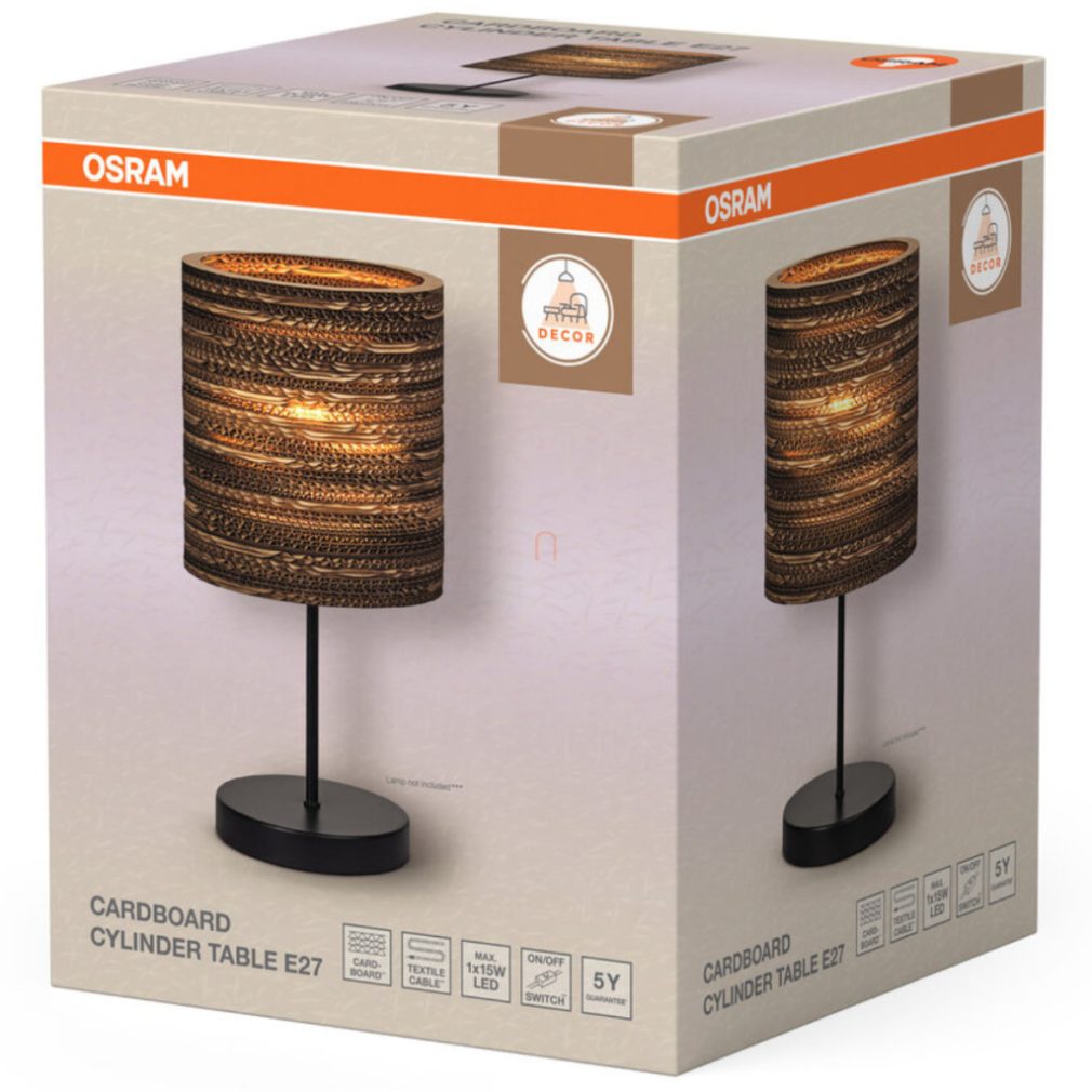 Lampă de masă din carton, 38,5 cm - Osram Decor Cardboard Cylinder, cu soclu 1xE27, cablu de 1,5 metri, 220-240 V