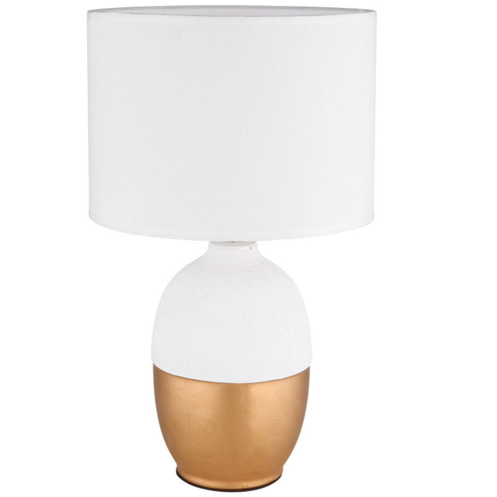 Lampa de masă din ceramică Valentino Globo 21627W are un finisaj elegant auriu, care combină armonios materialele ceramice și textile. Lampa are o înălțime de 43 cm, un diametru de 25 cm și o soclu E14, care poate fi echipat cu o sursă de lumină înlocuibilă. Produsul are un grad de protecție IP20, fiind potrivit pentru utilizare în interior. Lampa nu include o sursă de lumină, astfel încât fluxul luminos, temperatura culorii și puterea dorite pot fi selectate liber. Dimensiunile ambalajului sunt de 25x25x30 cm, iar lampa cântărește 0,99 kg. Producătorul este Globo, specializat în dezvoltarea de produse de iluminat de înaltă calitate pentru locuințe.