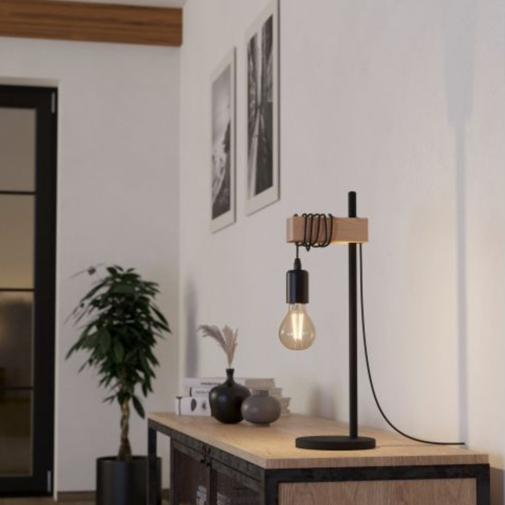 Lampa de masă din lemn Townshend Eglo 43515 este o soluție de iluminat pentru casă în stil vintage, cu o înălțime de 50 cm, fabricată de Eglo. Materialele principale ale lămpii sunt oțelul și lemnul, iar schema de culori constă într-o combinație de negru și lemn natural. Are un soclu E27, care poate fi echipat cu o sursă de lumină înlocuibilă (sursa de lumină nu este inclusă). Lampa este acționată de un întrerupător cu cablu, nu este reglabilă și are un grad de protecție IP20. Produsul cântărește 1,7 kg și măsoară 175 mm lungime, 155 mm lățime și 500 mm înălțime. Ambalajul măsoară 8 cm lățime, 17 cm lungime și 52 cm înălțime. Lampa este distribuită de EGLO, iar codul său logistic este 43515.