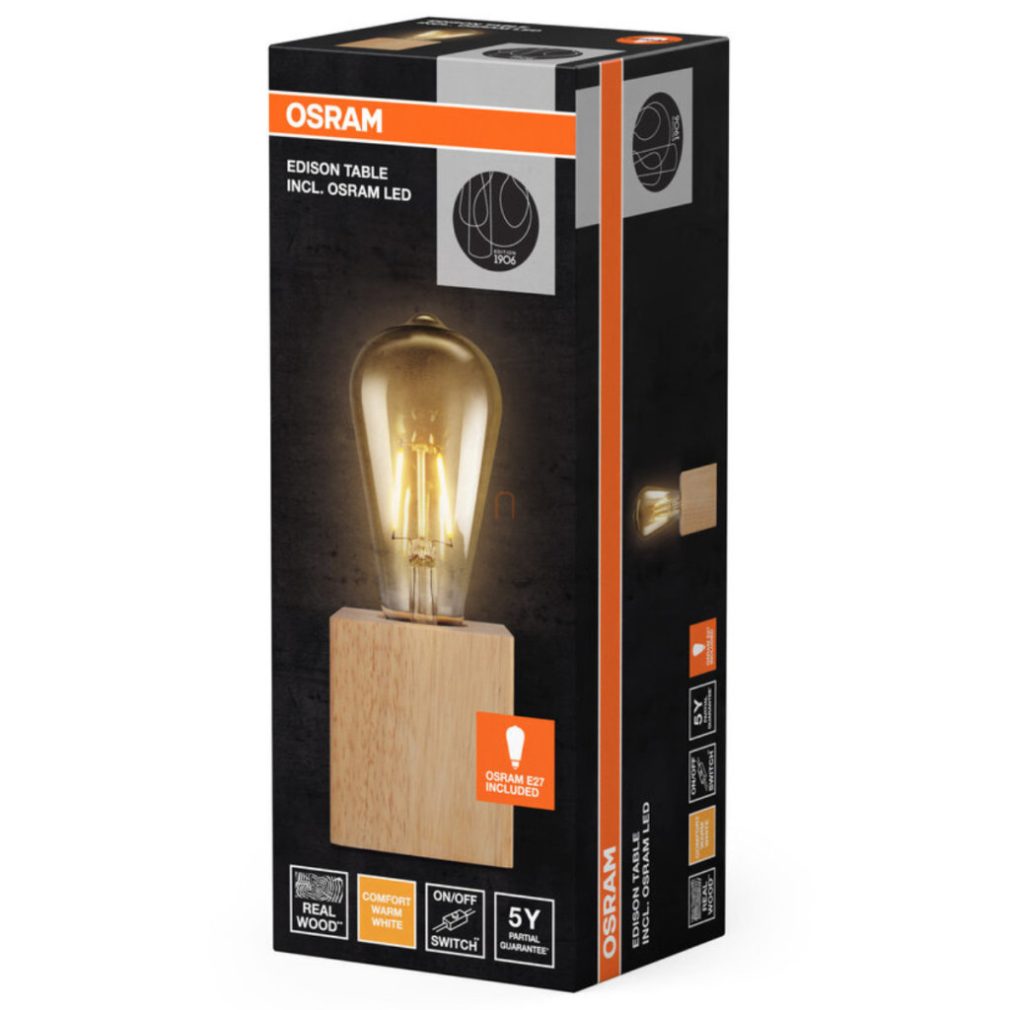 Lampă de masă din lemn cu model în carouri Vintage 1906 Edison, 19,5 cm - Osram Vintage 1906 Edison, 1xE27 soclu, cablu de 1,2 metri, 220-240 V