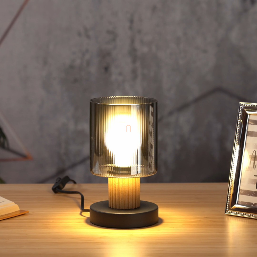 Lampă de masă din sticlă cu nervuri, 21 cm - Aleidis Globo 15768T - 1xE27, 230 V, IP20, cablu de 1,5 metri
