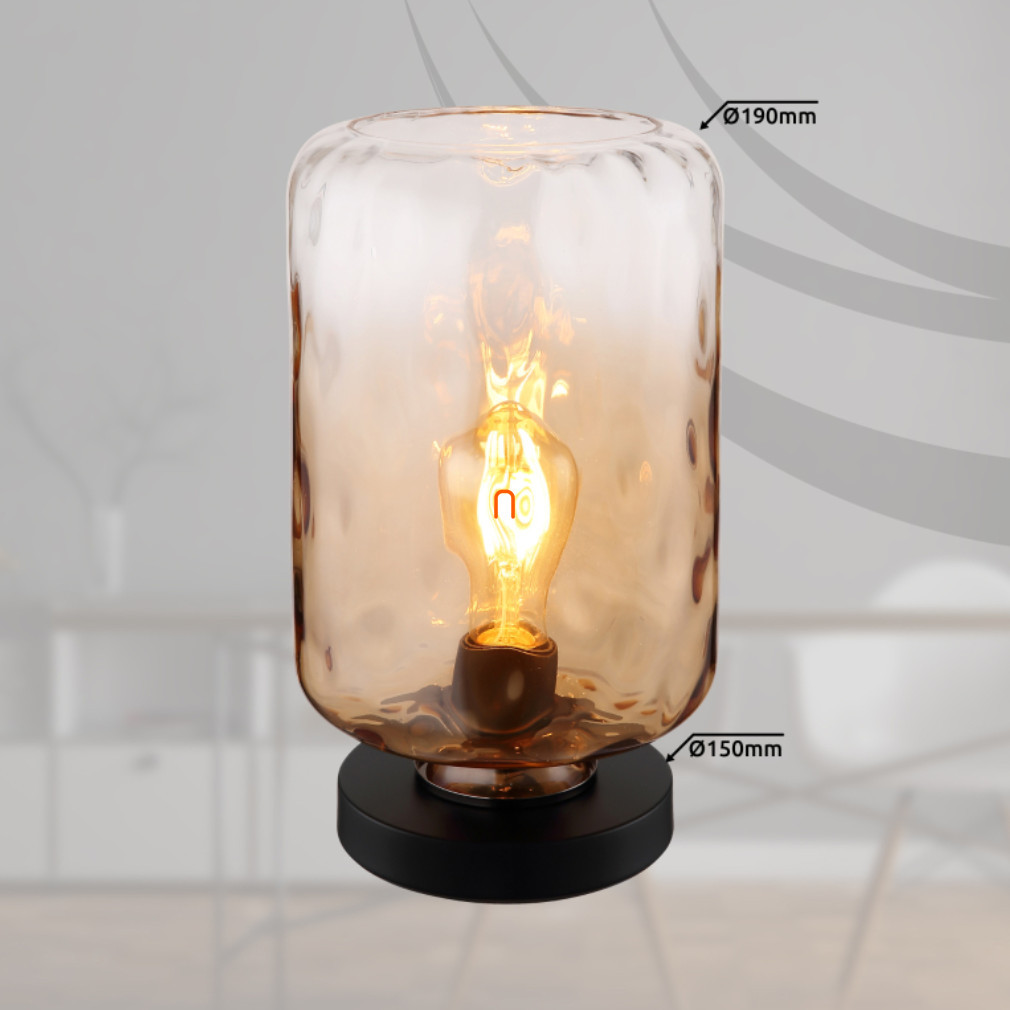 Lampă de masă în culoarea chihlimbar, sticlă, 32 cm - Darina Globo 16046TA - gradient de culoare, comutator basculant, soclu 1xE27, 230 V