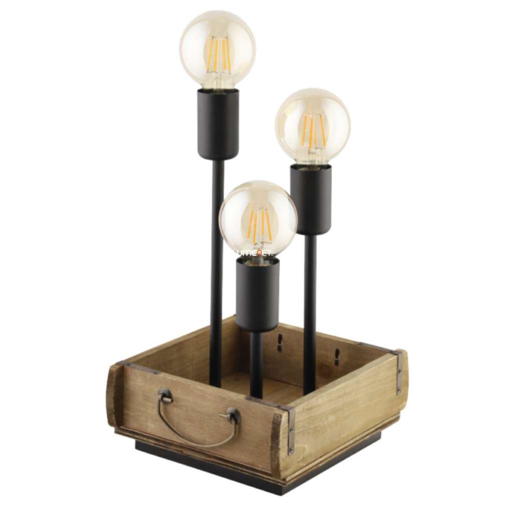 Lampă de masă în cutie din lemn cu trei socluri, 37 cm - Wootton Eglo 43594, cu 3xE27 socluri