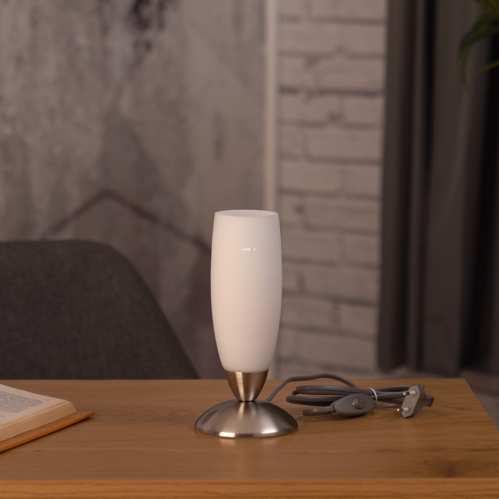 Lampa de masă Eglo Slim 82305 în formă de bol se potrivește în mediile moderne de acasă sau de la birou, datorită stilului său contemporan și designului curat. Lampa are o înălțime de 22 cm, un diametru de 7 cm, este fabricată din oțel și sticlă și este disponibilă în culorile alb și argintiu. Are un soclu E14, care funcționează cu o sursă de lumină înlocuibilă, sursa de lumină nefiind inclusă. Lampa se aprinde și se stinge cu un întrerupător cu cablu și nu este reglabilă. Produsul are un grad de protecție IP20, deci este recomandat pentru utilizare în interior. Dimensiunile ambalajului sunt: 11 cm lățime, 10 cm lungime, 20 cm înălțime, iar lampa cântărește 0,5 kg. Codul logistic este 82305, iar producătorul este EGLO.
