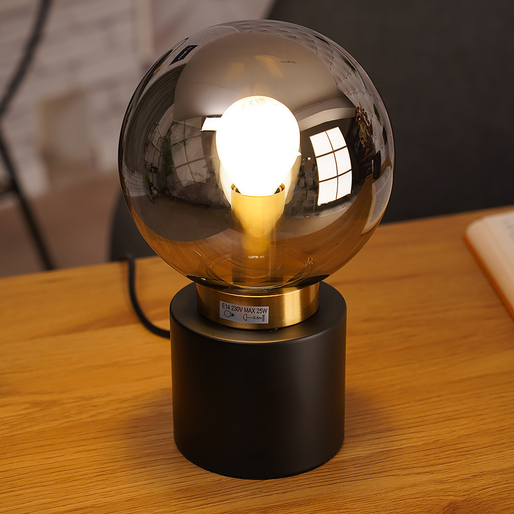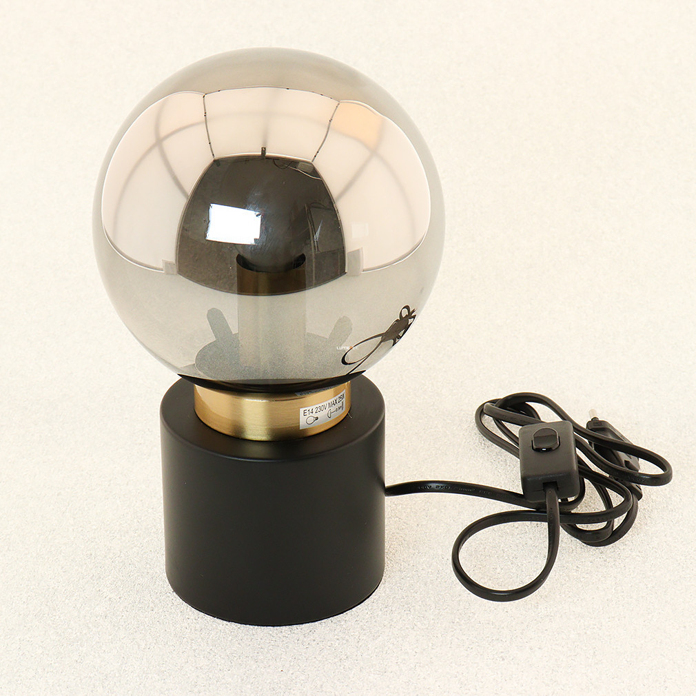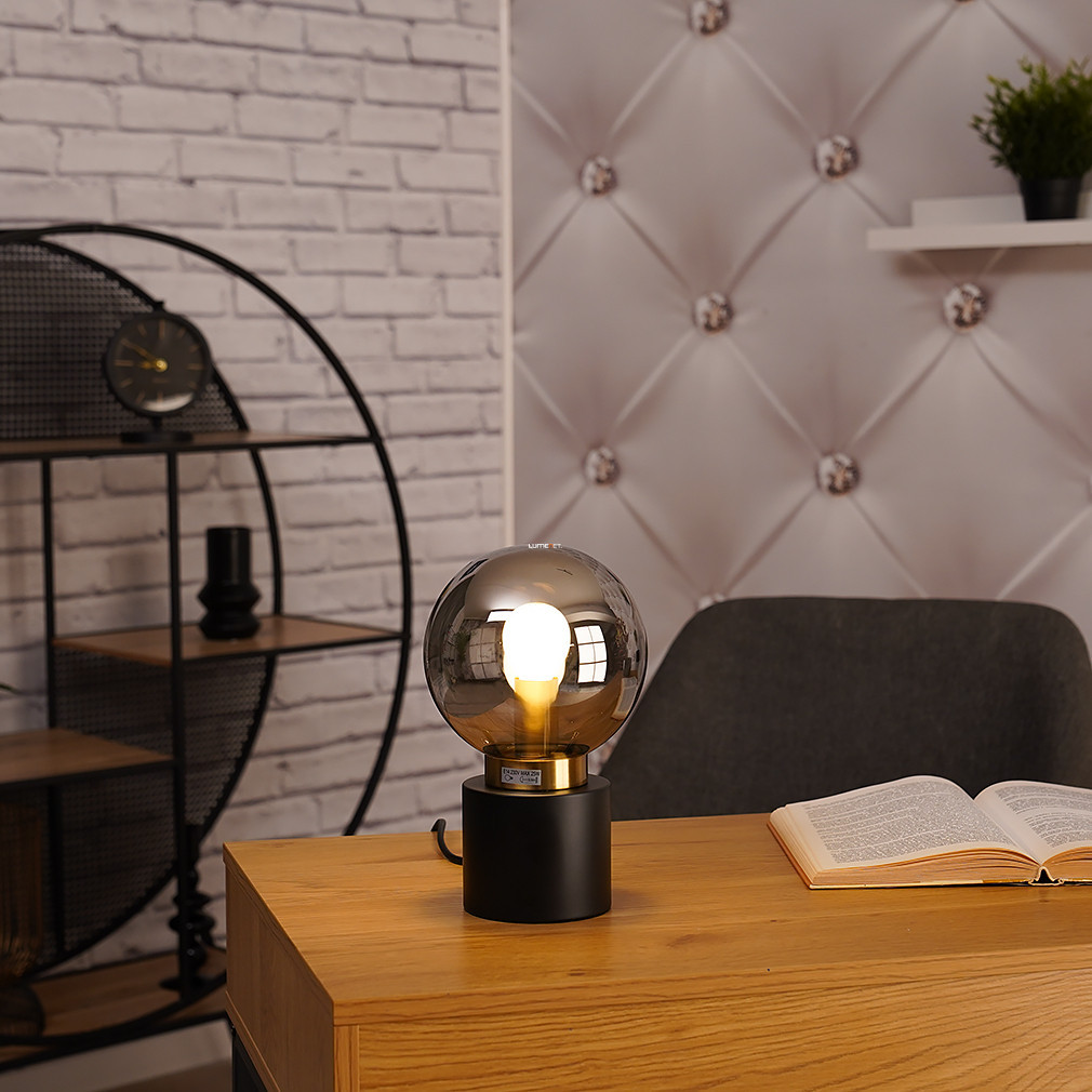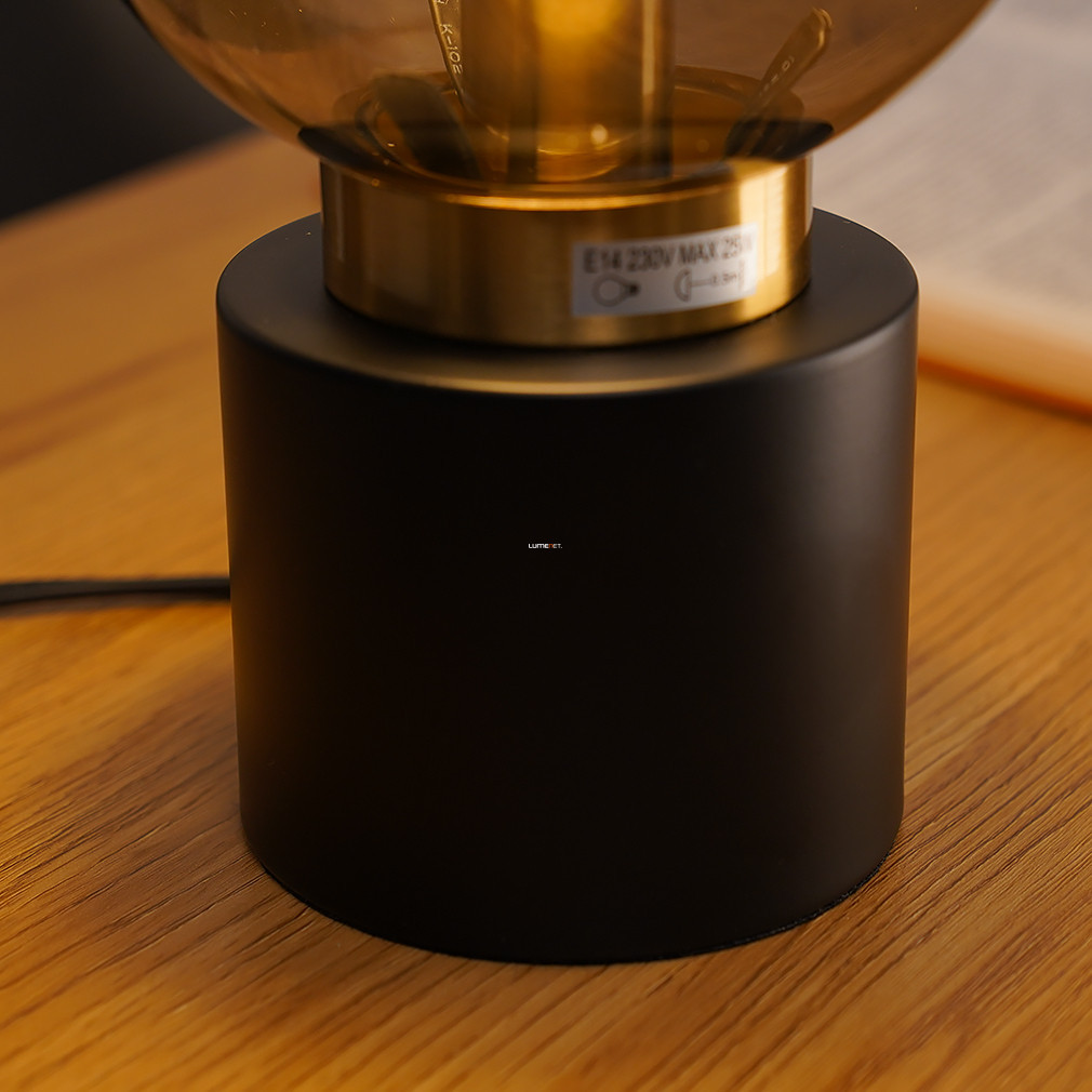 Lampă de masă în negru și auriu, 24 cm, sticlă fumurie - Marka Globo 21003BB, cu soclu 1xE14