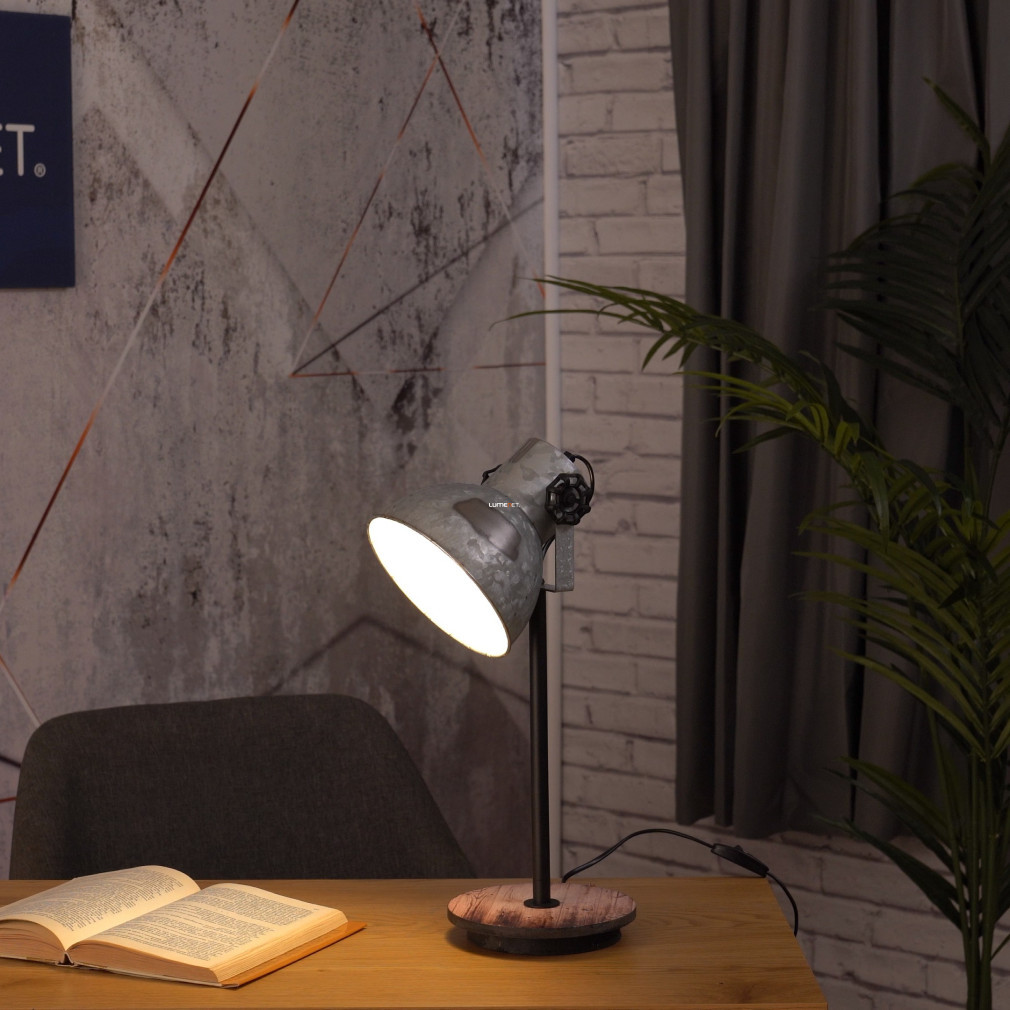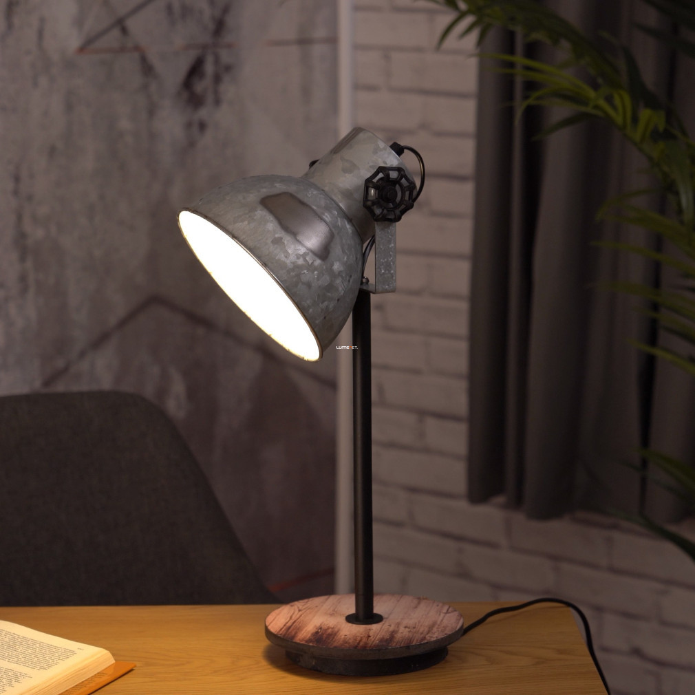Lampa de masă în stil loft Barnstaple Eglo 49718 are o înălțime de 40 cm, este fabricată din oțel și lemn, în culori gri și antichizate. Lampa are un singur soclu E27, care poate fi echipat cu o sursă de lumină înlocuibilă. Produsul nu include bec; sursa de lumină trebuie achiziționată separat, astfel încât fluxul luminos, culoarea luminii, puterea și temperatura culorii depind de becul ales. Lampa este acționată de un întrerupător cu cablu, nu este reglabilă și are protecție IP20, fiind potrivită pentru utilizare în interior. Dimensiuni: 175 mm lungime, 180 mm lățime, 400 mm înălțime, greutate 2,05 kg. Dimensiunile ambalajului sunt 20x26x49 cm, iar producătorul este EGLO.