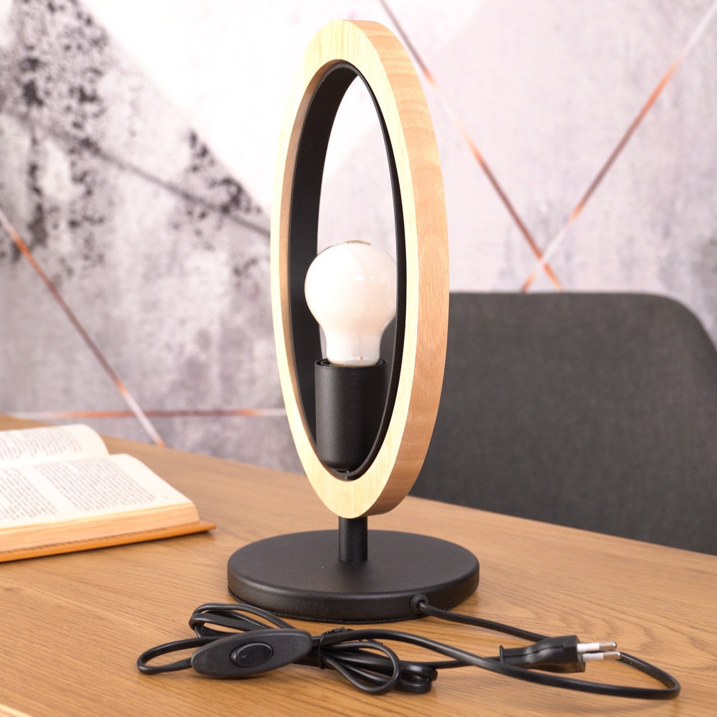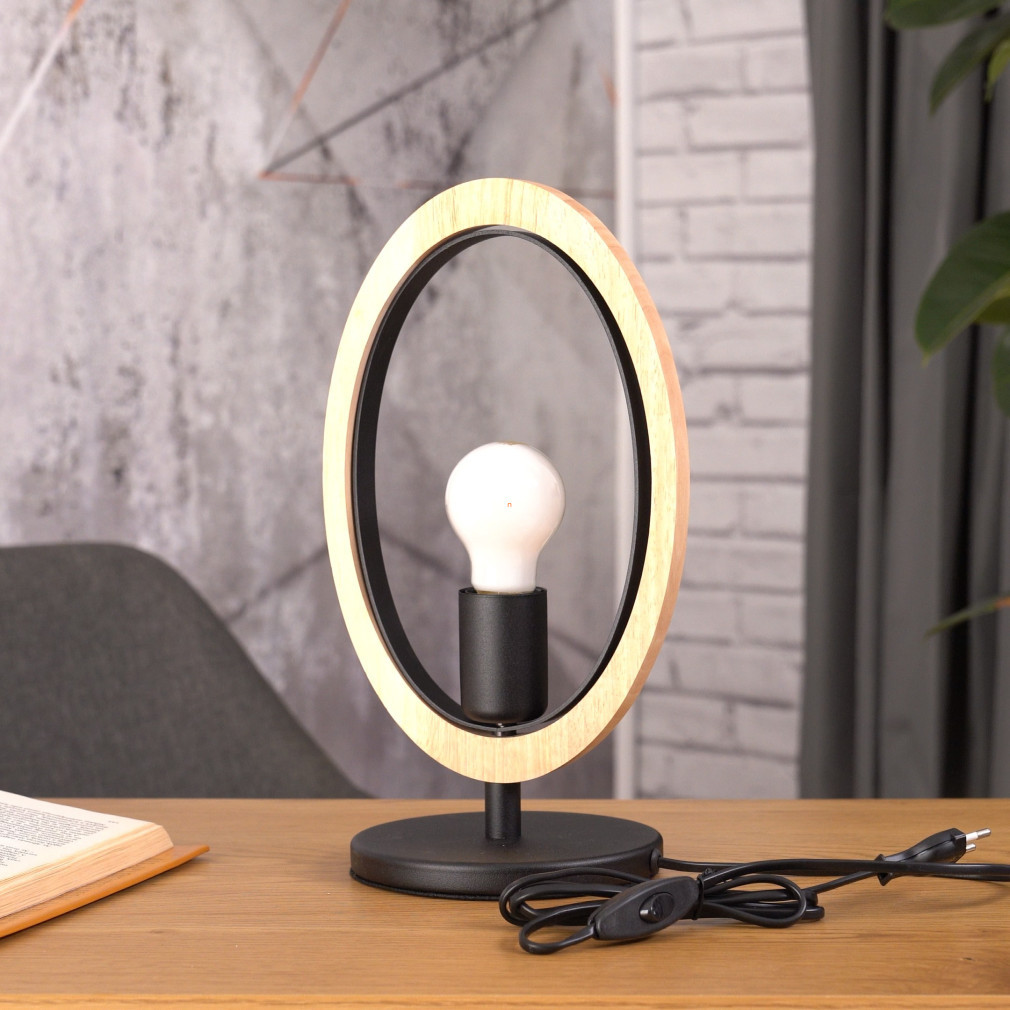 Lampă de masă cu inel din lemn, 42 cm - Basildon Eglo 43569, cu soclu 1xE27