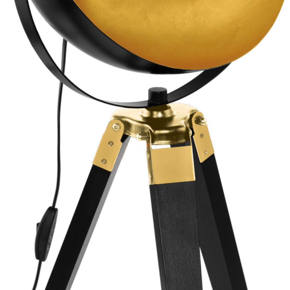 Lampă de podea, 164 cm, negru și auriu - Covaleda Eglo 49618, întrerupător pe cablu, lemn, soclu 1xE27