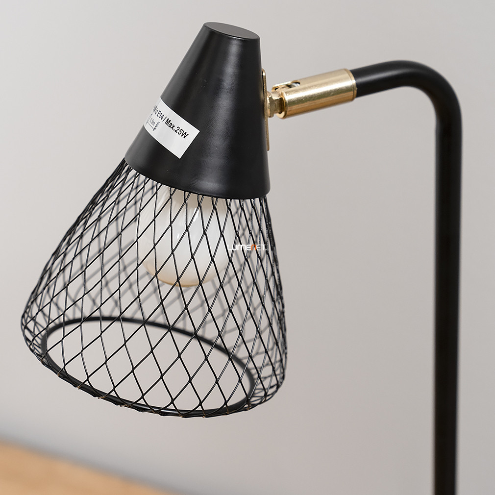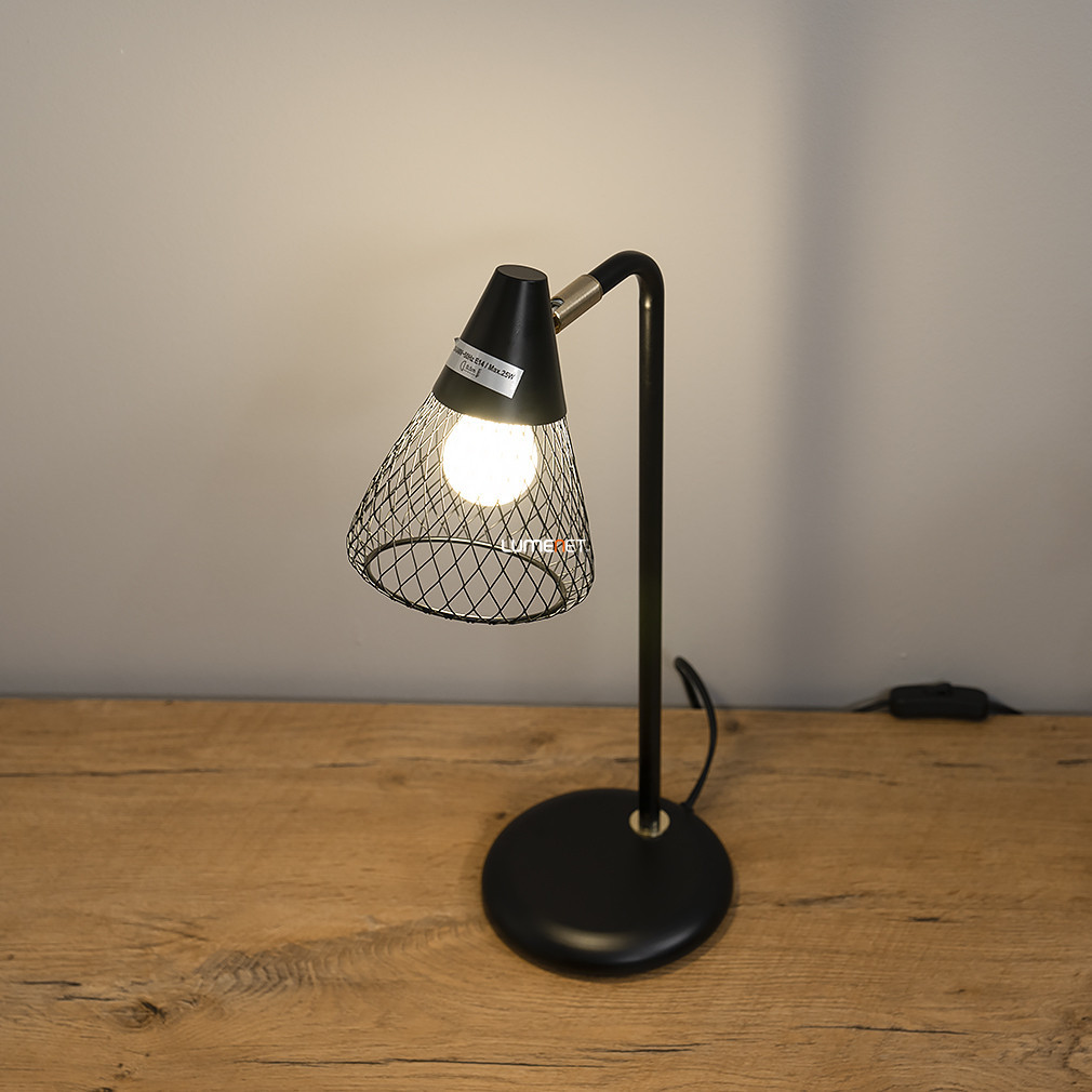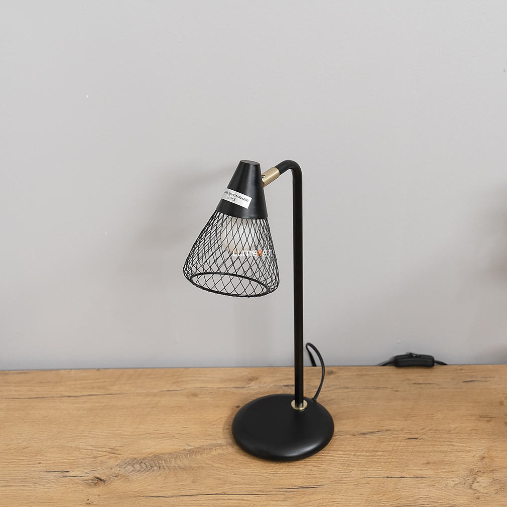 Lampa de masă Fanny Rábalux 3181 cu plasă este realizată într-un stil vintage modern, din metal negru și auriu. Lampa are o înălțime de 46 cm, un diametru de 15 cm și o greutate de 0,94 kg. Are un soclu E14, care permite înlocuirea sursei de lumină, fluxul luminos, temperatura culorii și puterea depinzând de becul ales. Lampa are protecție IP20, fiind potrivită pentru utilizare în interior. Se aprinde și se stinge cu ajutorul unui întrerupător cu cablu, iar cablul are o lungime de 1,6 metri. Dimensiunile ambalajului sunt 47 cm lățime, 17 cm lungime și 17 cm înălțime. Produsul nu include sursa de lumină. Fabricat de Rábalux.