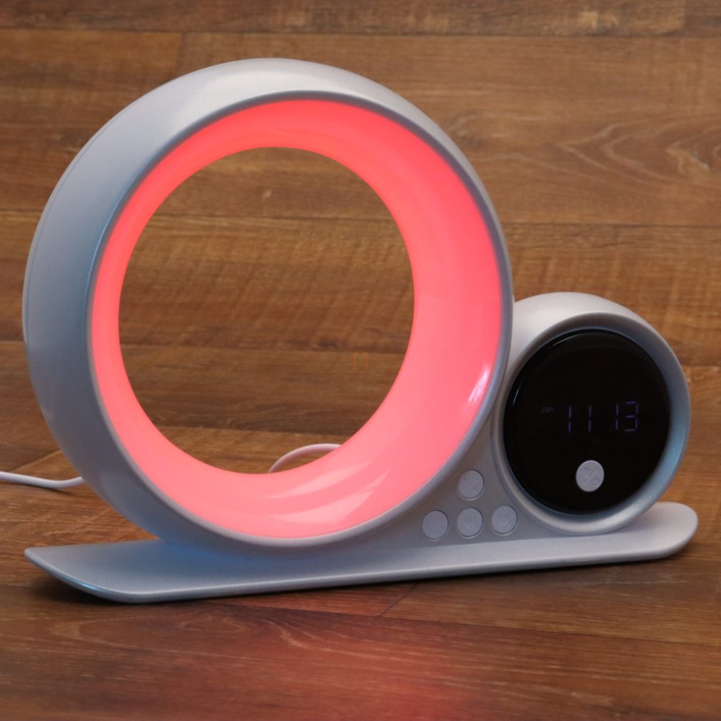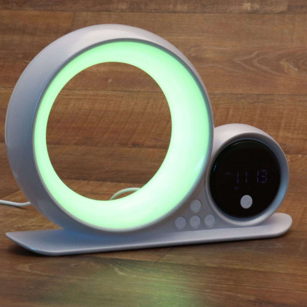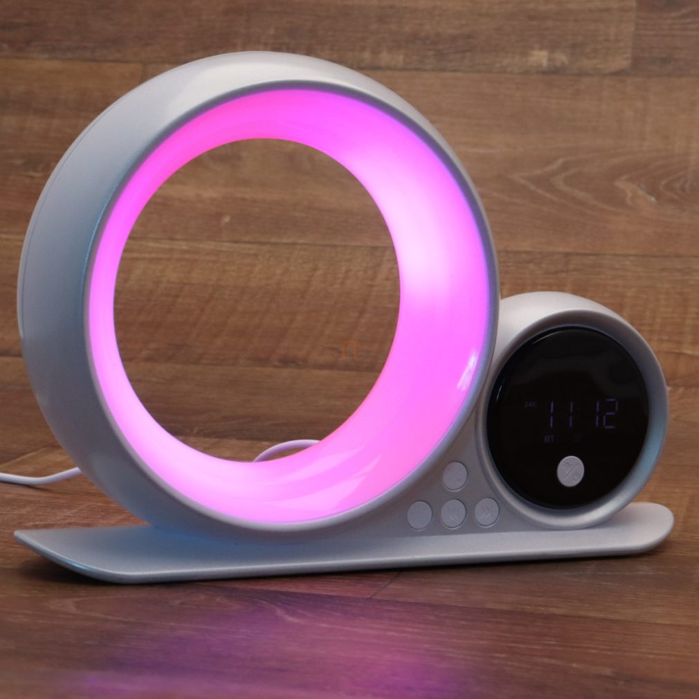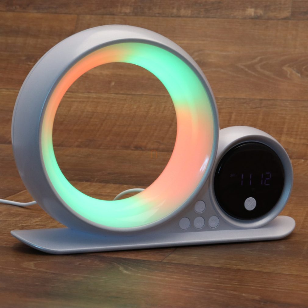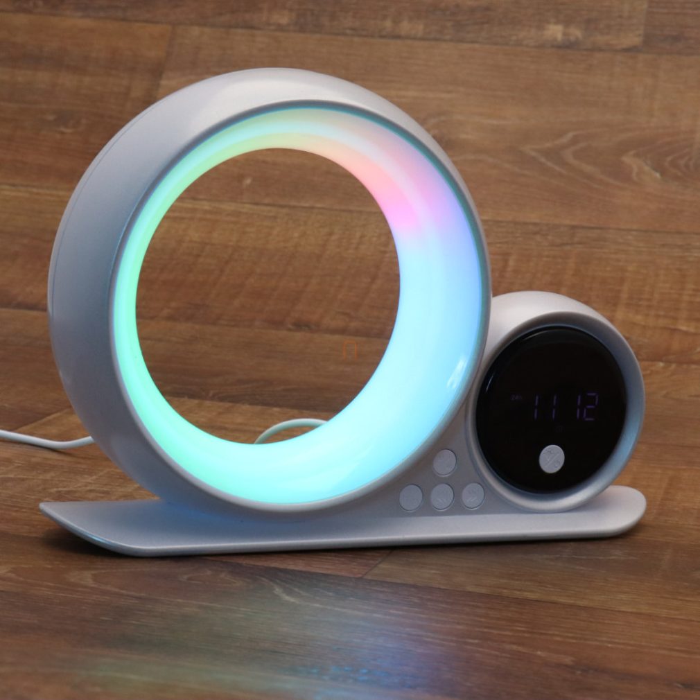 Lampă de masă RGB LED cu ceas cu alarmă, difuzor, reîncărcabilă, 28x20 cm - Wakeway Rábalux 76109
