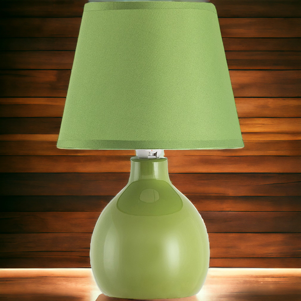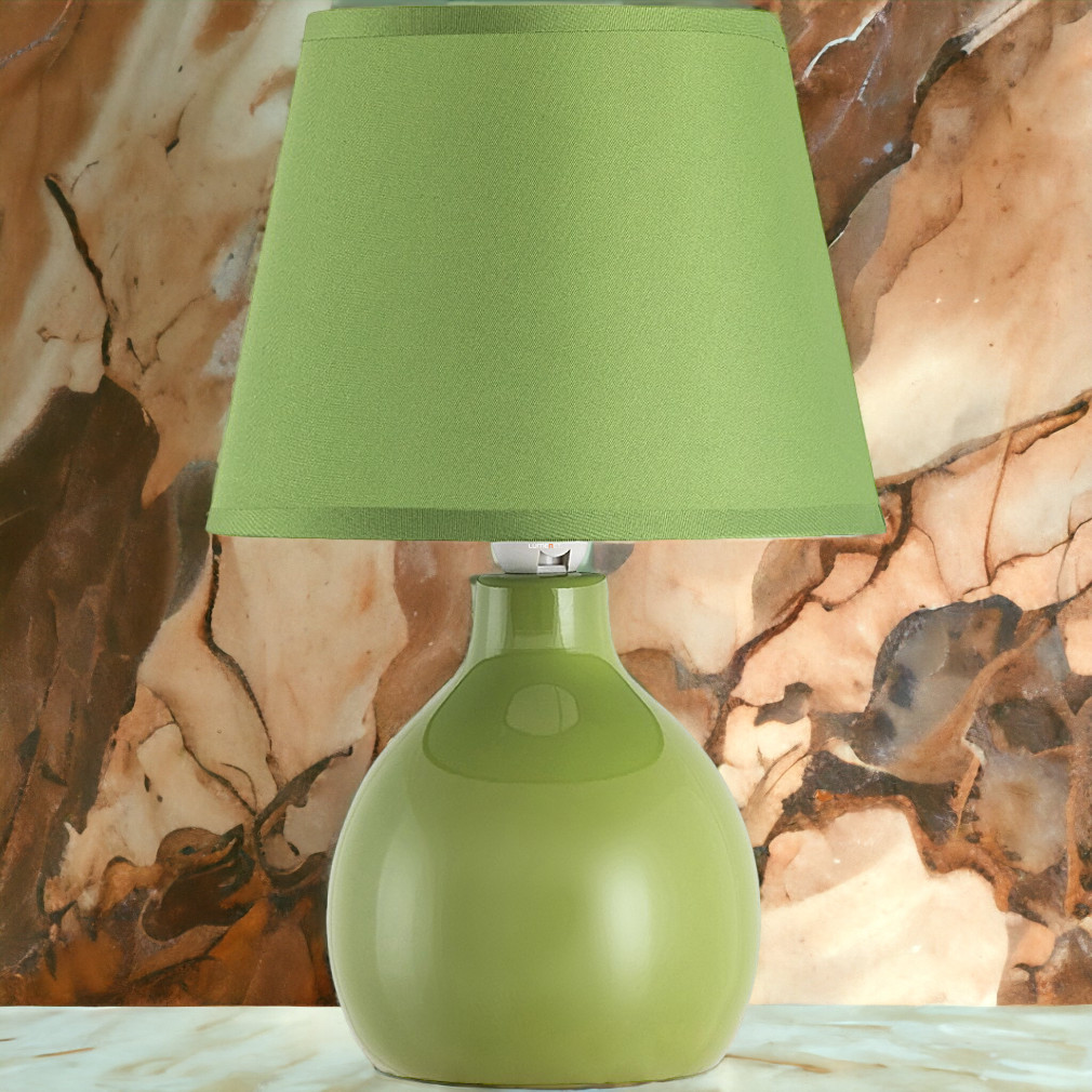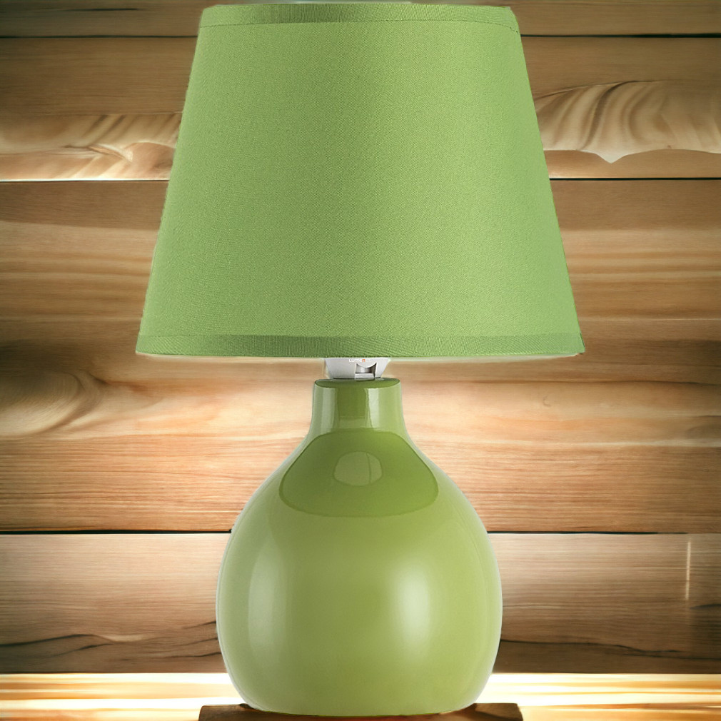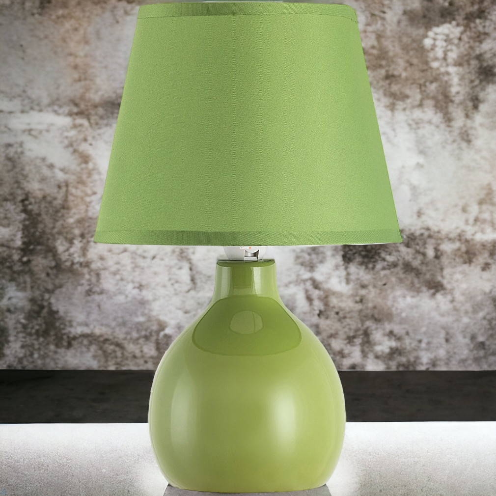 Lampă de masă verde, ceramică, 28 cm - Ingrid Rábalux 4477, abajur din material textil, soclu 1xE14