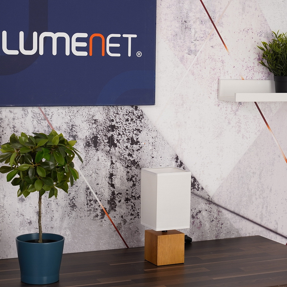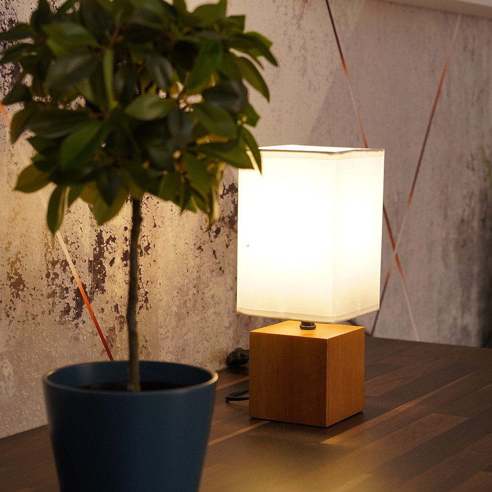 Lampă de noptieră din lemn în carouri albe, 30 cm - Valentino Globo 21628W, cu soclu 1xE27, 230 V