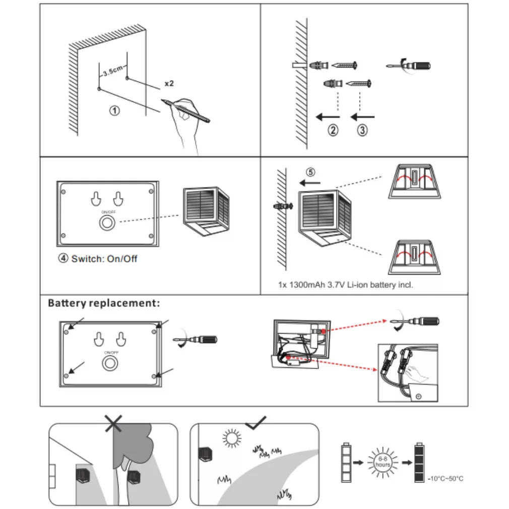 Lampa de perete cu senzor de mișcare și lumină solară, alb cald, negru - Solar Globo 36495