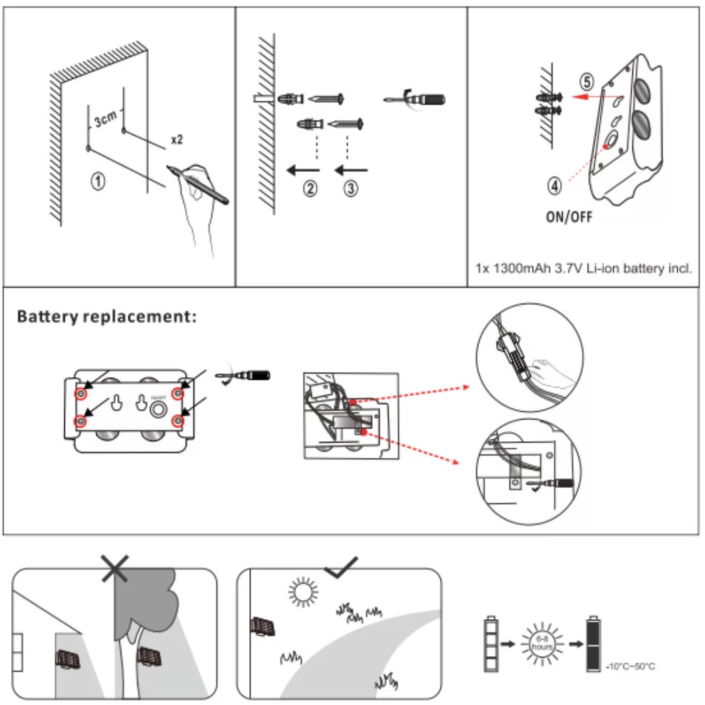 Lampa de perete cu senzor de mișcare și lumină solară, alb cald, negru - Solar Globo 36496