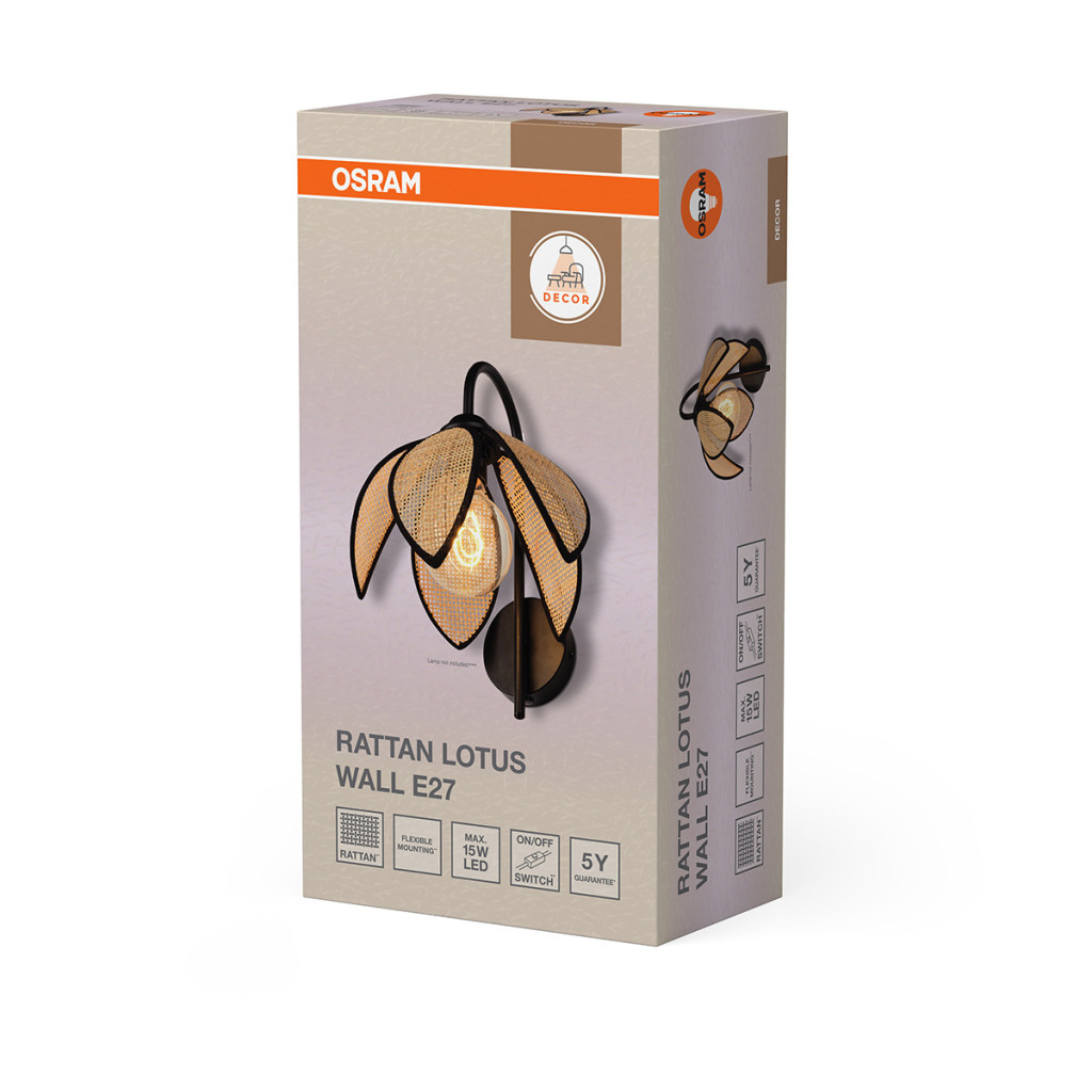 Lampă de perete din ratan - Osram Decor Rattan Lotus, cu soclu 1xE27, 220-240 V