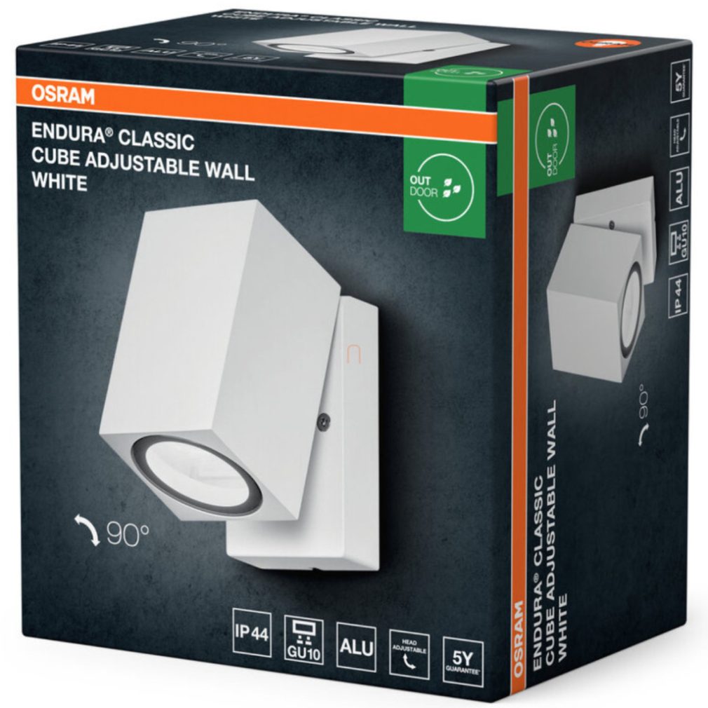 Lampă de perete pentru exterior Osram cu cap înclinabil, albă (Classic Cube)