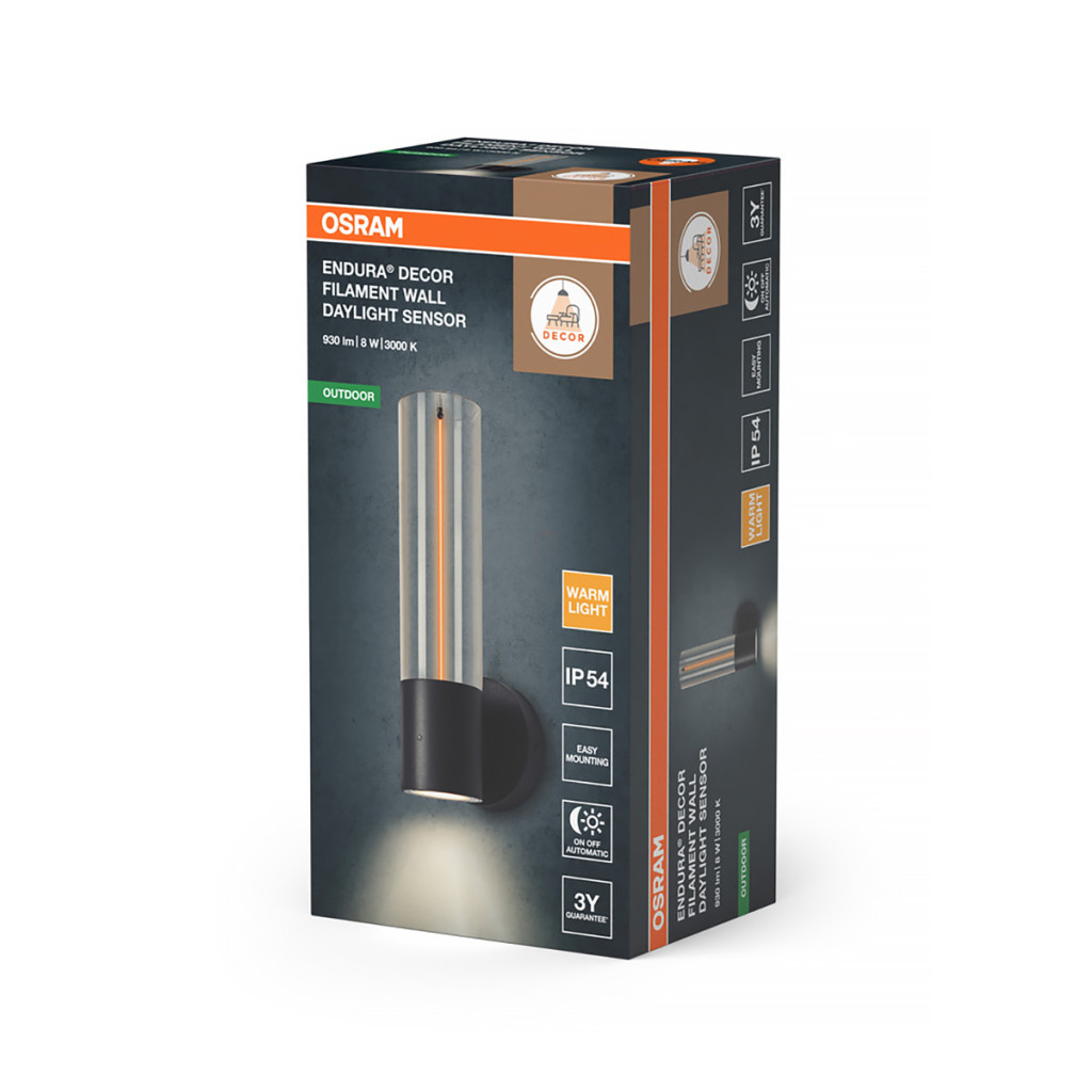 Lampă de perete pentru exterior Osram Endura Decor Filament cu comutator crepuscular, 8 W, 600 lm, 3000 K