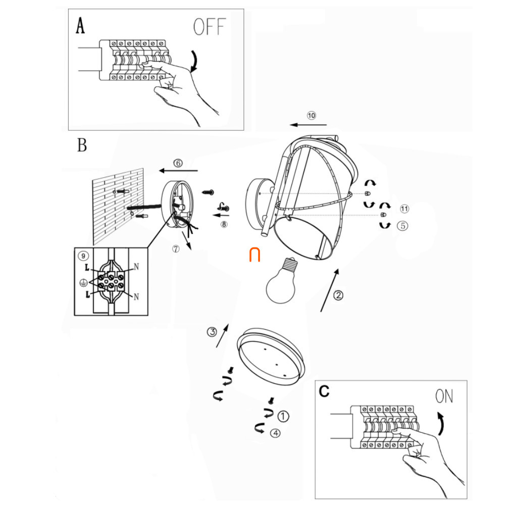 Soclu de corp de iluminat: 1xE27