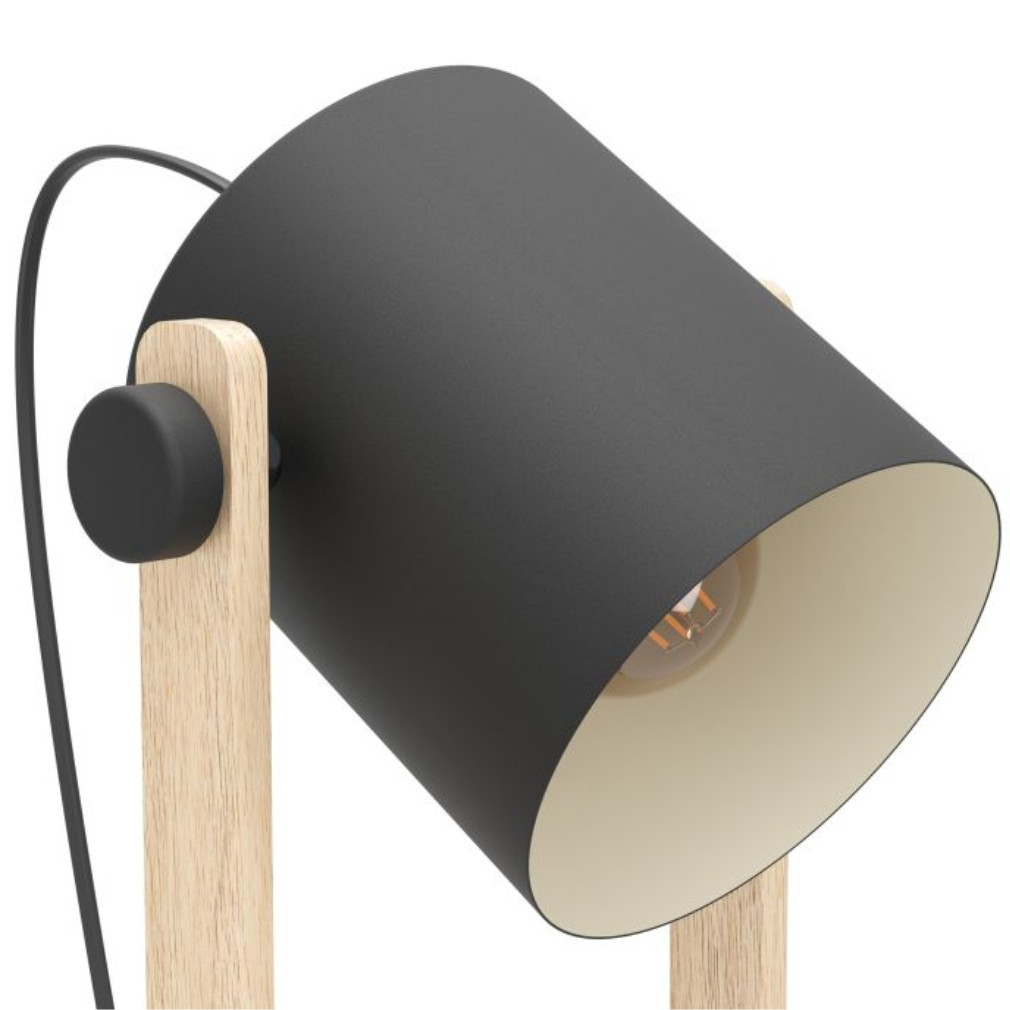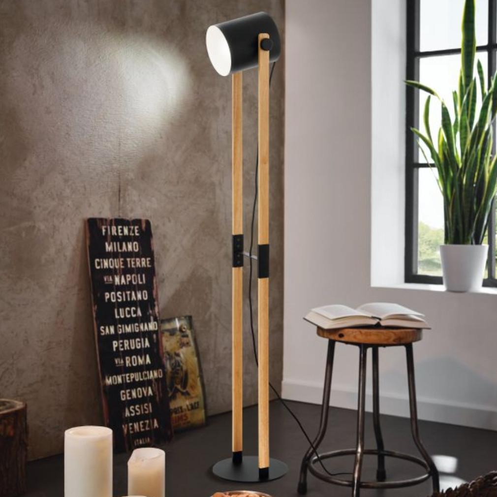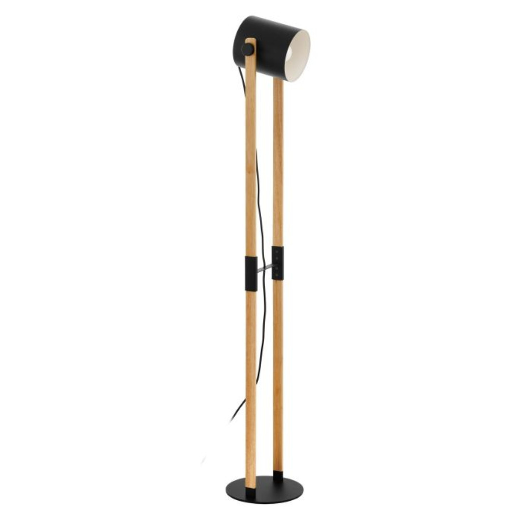 Lampă de podea, 140 cm, culoare negru-bej-lemn - Hornwood Eglo 43521, întrerupător pe cablu, soclu 1xE27