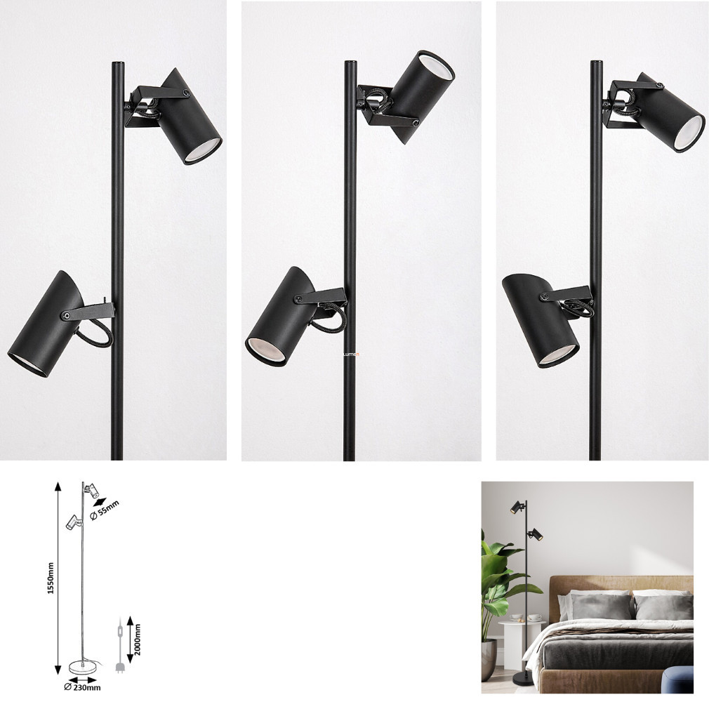 Cu o înălțime de 155 cm și un design modern, din metal negru mat, lampa de podea Maximilian Rábalux 73046 îndeplinește cerințele iluminatului contemporan pentru locuințe. Corpul de iluminat are două socluri GU10 care acceptă surse de lumină înlocuibile, permițând reglarea fluxului luminos, a temperaturii culorii și a puterii în funcție de necesități. Produsul funcționează la o tensiune nominală de 230 V și are un grad de protecție IP20, fiind potrivit pentru utilizare în interior. Lampa are un diametru de 55 mm, o lungime de 280 mm și o greutate de 2,6 kg. Dimensiunile ambalajului sunt de 59 cm lungime, 25 cm lățime și 13 cm înălțime. Lungimea cablului de 2 metri oferă flexibilitate în timpul instalării. Sursa de lumină nu este inclusă, astfel încât parametrii de iluminare pot fi selectați liber.