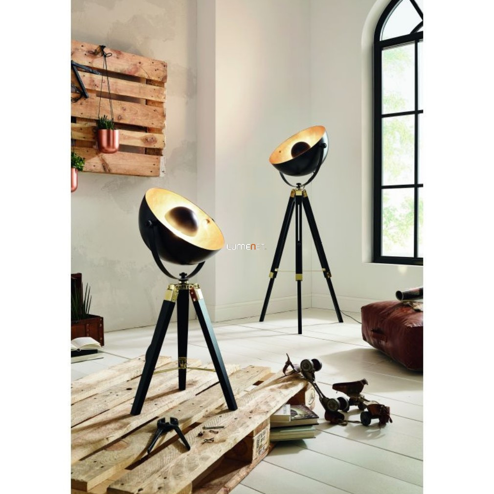 Lampă de podea, 164 cm, negru și auriu - Covaleda Eglo 49618, întrerupător pe cablu, lemn, soclu 1xE27