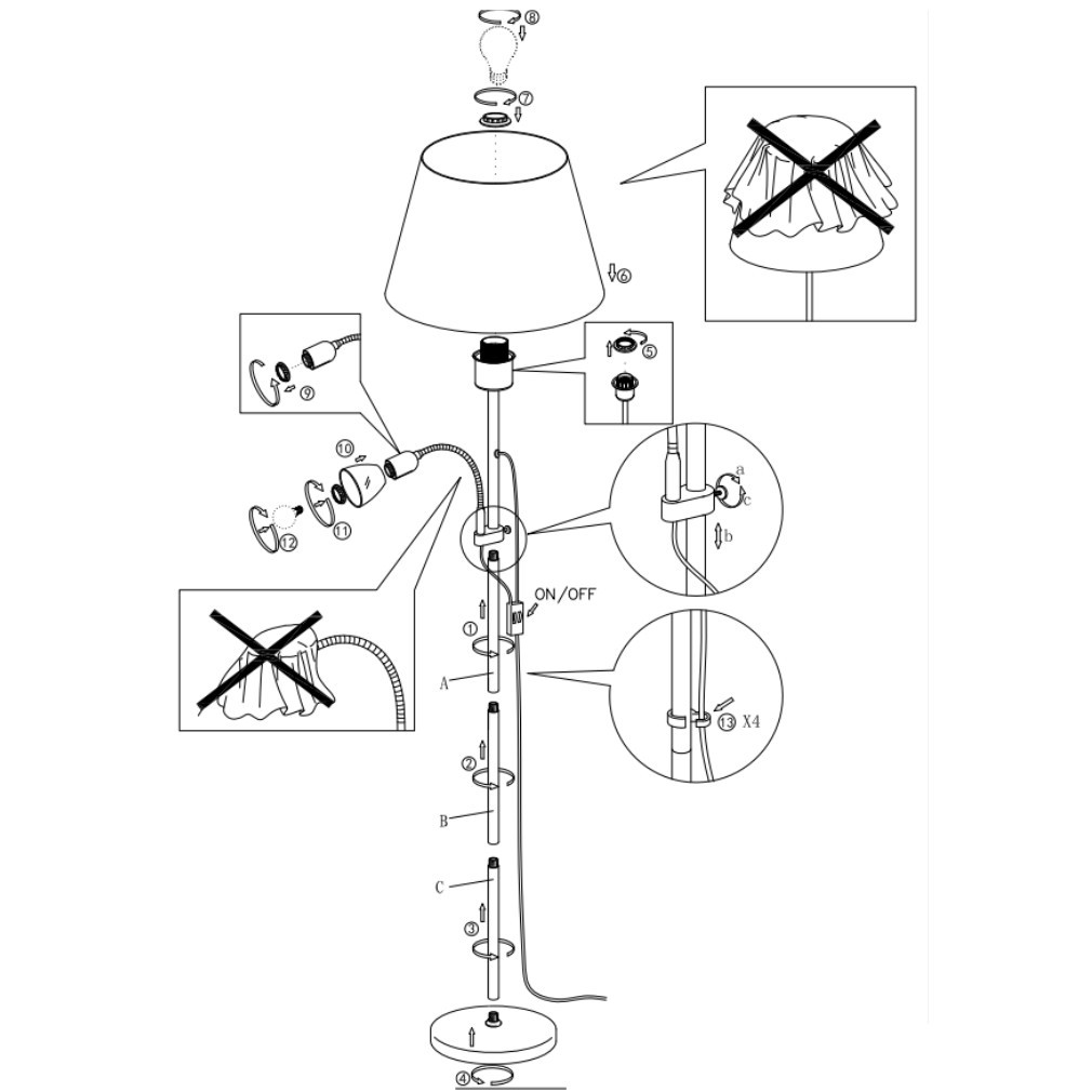 Lampă de podea 170 cm, alb-argintiu - Conesa Eglo 95686, comutator pe cablu, textil, sticlă, cu 1xE27+1xE14 socluri