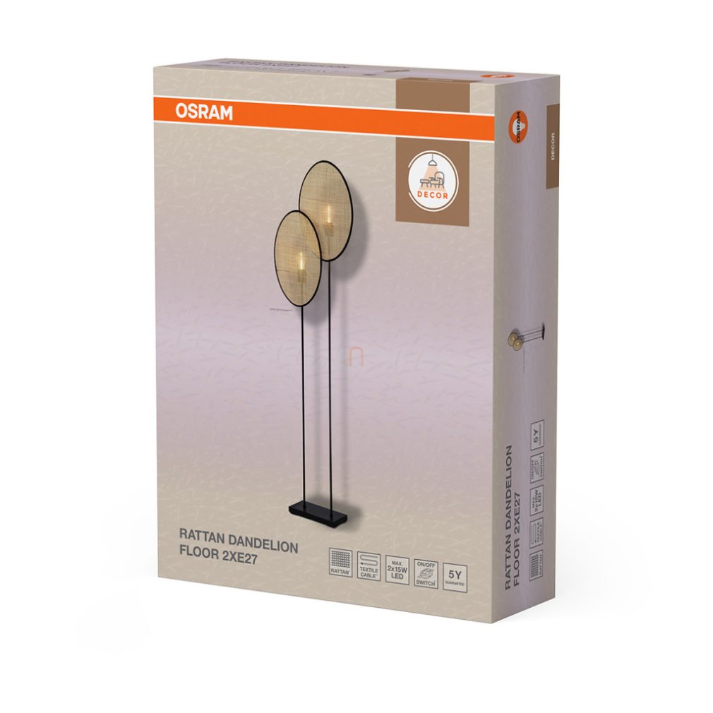 Lampă de podea, 170 cm - Osram Decor Rattan Dandelion, cu soclu 2xE27, 220-240 V