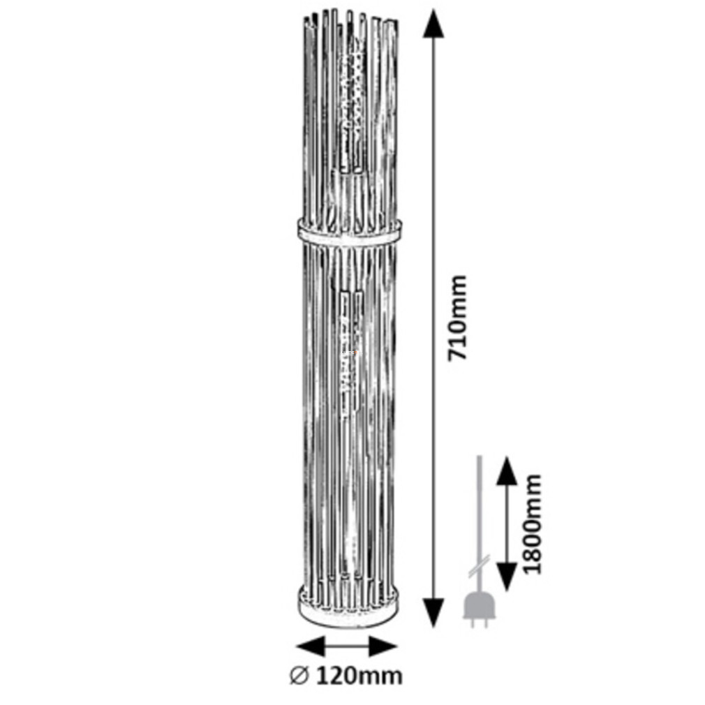 Lampa de podea Roxas Rábalux 74022, cu designul său modern și corpul metalic decorat cu elemente aurii și negru mat, conferă un aspect elegant oricărui spațiu de locuit. Lampa are o înălțime de 71 cm și o greutate de 2,31 kg, fiind stabilă și ușor de amplasat. Are două socluri E27, care pot fi echipate cu surse de lumină înlocuibile. Lampa este echipată cu un cablu textil, care evidențiază designul de înaltă calitate al produsului. Lampa de podea Roxas are protecție IP20, fiind potrivită pentru utilizare în interior. Sursa de lumină nu este inclusă, iar lampa nu este reglabilă. Dimensiunile ambalajului sunt 13x13x73 cm, iar codul logistic al produsului este 74022.