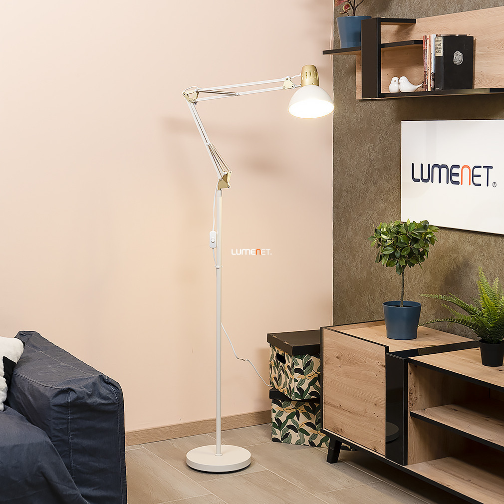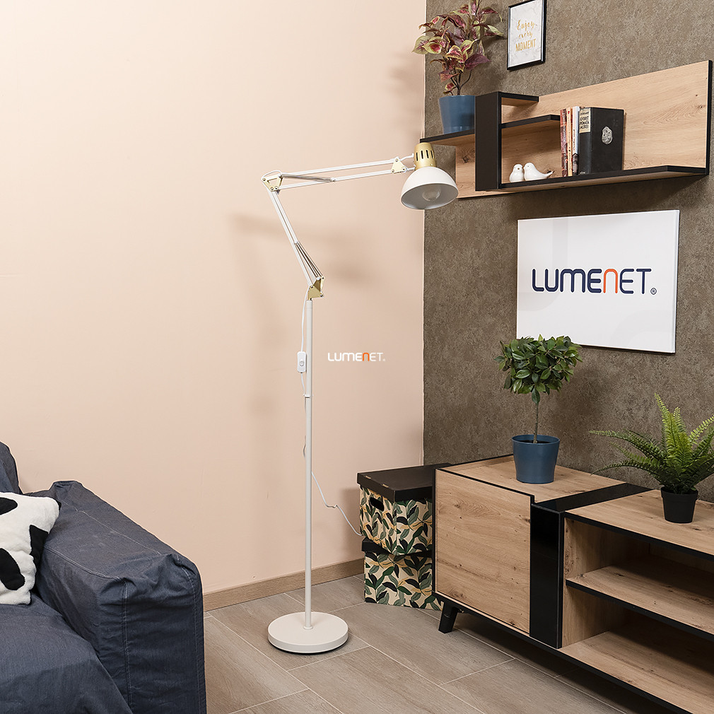 Cu o înălțime de 171 cm și stilul său funcțional, lampa de podea Aristeo Rábalux 2197 este alegerea ideală pentru soluții moderne de iluminat pentru locuințe. Lampa este fabricată din metal în culori bej și auriu, conferindu-i un aspect elegant. Are un soclu E27, care poate fi echipat cu o sursă de lumină înlocuibilă, permițând varierea fluxului luminos, a culorii luminii, a puterii și a temperaturii culorii, în funcție de necesități. Capul lămpii este reglabil, permițând controlul ușor al direcției luminii, dar nu are funcție de reglare a intensității luminoase. Clasa de protecție IP20 permite utilizarea în interior. Produsul cântărește 4,51 kg, are un diametru de 250 mm, o lățime de 660 mm și o înălțime de 1710 mm. Dimensiunile ambalajului sunt: 26 cm lățime, 43 cm lungime și 12 cm înălțime. Lampa nu include o sursă de lumină în pachet. Fabricat de Rábalux.