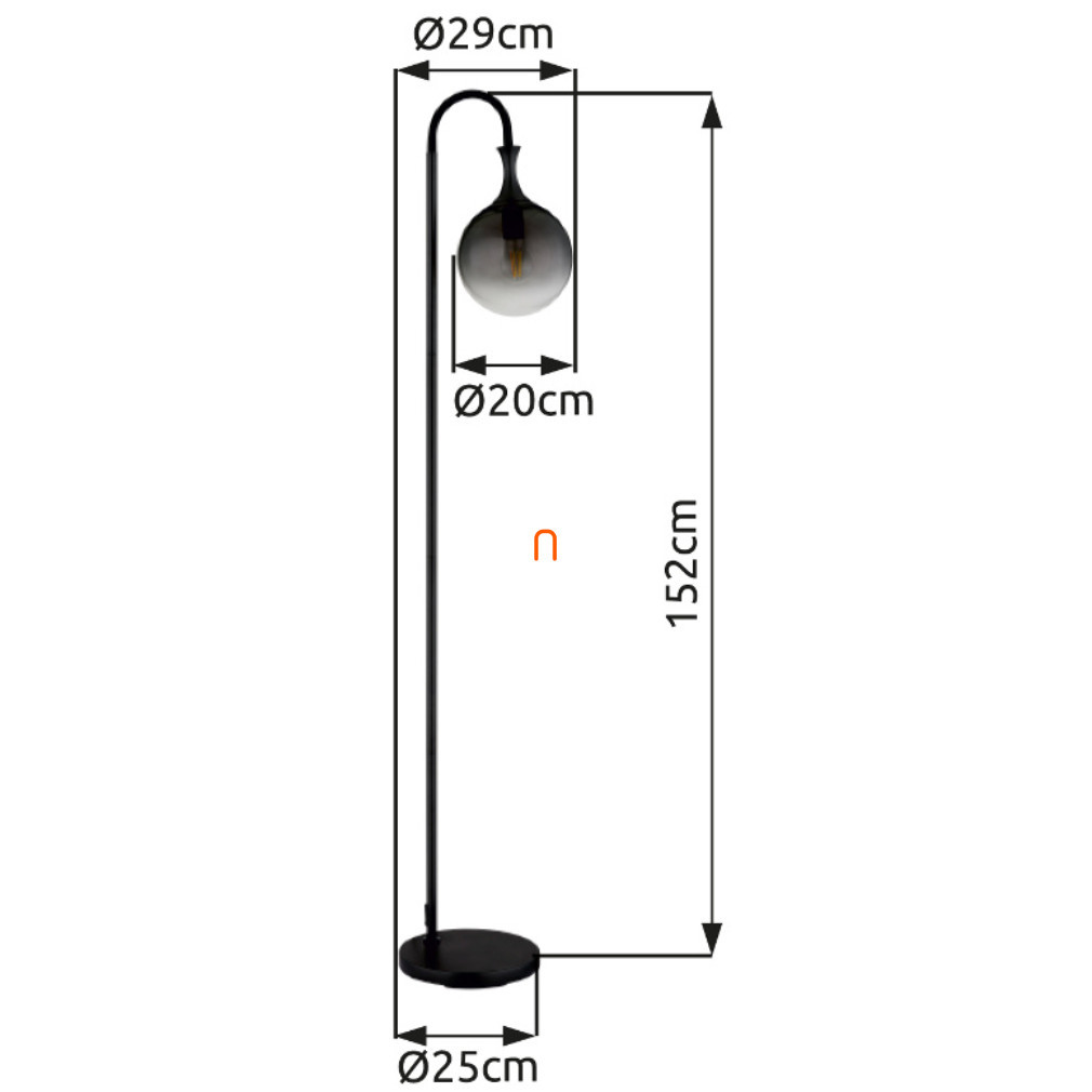 Lampă de podea cu abajur din sticlă de culoare fumurie, 152 cm - Dalton Globo 15885S, comutator cu picior, sticlă, soclu 1xE27, 230 V