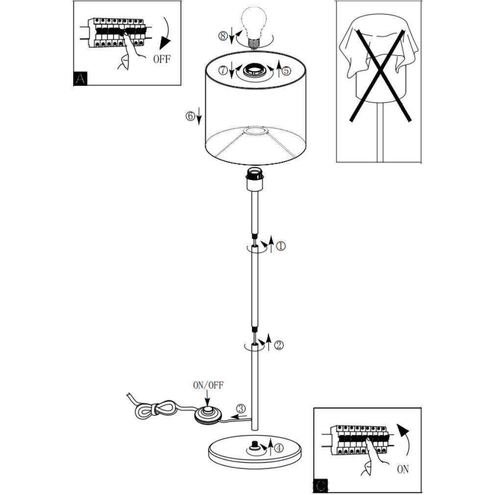 Lampă de podea cu comutator la picior, 152 cm, negru - Maserlo Eglo 99046, textilă, cu soclu 1xE27