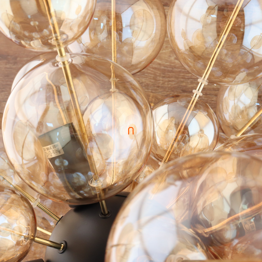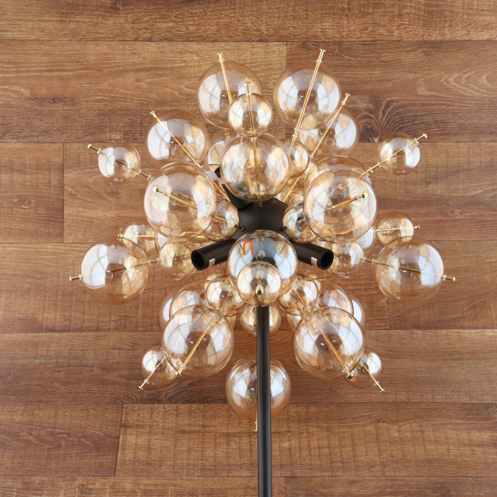 Lampă de podea cu globuri din sticlă aurie, 155 cm - Udo Globo 15633SA, comutator cu picior, soclu 6xE14, 230 V