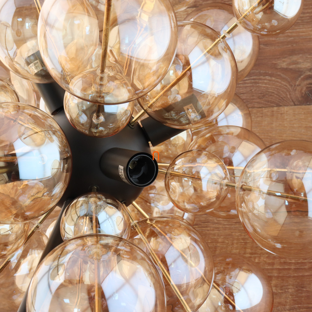 Lampa de podea Udo Globo 15633SA, cu designul său modern și sferele din sticlă aurie, adaugă o notă elegantă oricărui interior. Lampa are o înălțime de 155 cm, un diametru de 55 cm, este fabricată din metal și sticlă și este disponibilă într-o combinație de negru mat și auriu. Are șase socluri E14, care pot fi echipate cu surse de lumină înlocuibile, permițând reglarea intensității luminoase, a culorii luminii și a temperaturii culorii în funcție de necesități. Lampa este acționată de un comutator cu pedală și necesită o tensiune nominală de 230 V pentru conectare. Gradul de protecție IP20 o face potrivită pentru utilizare în interior. Produsul cântărește 6,95 kg și are o lungime a cablului de 1,8 metri. Dimensiunile ambalajului sunt de 44 cm lățime, 27 cm lungime și 71 cm înălțime. Sursele de lumină nu sunt incluse în pachet.
