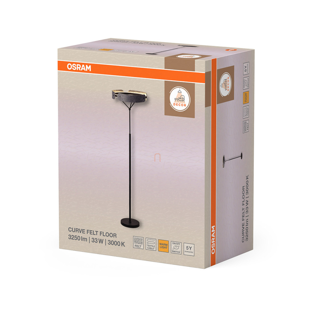 Lampă de podea cu LED și capac din țesătură, 150 cm - Osram Decor Curve Felt, 3000 K, 1000 lm, 33 W, cu cablu de 1,8 metri, 220-240 V